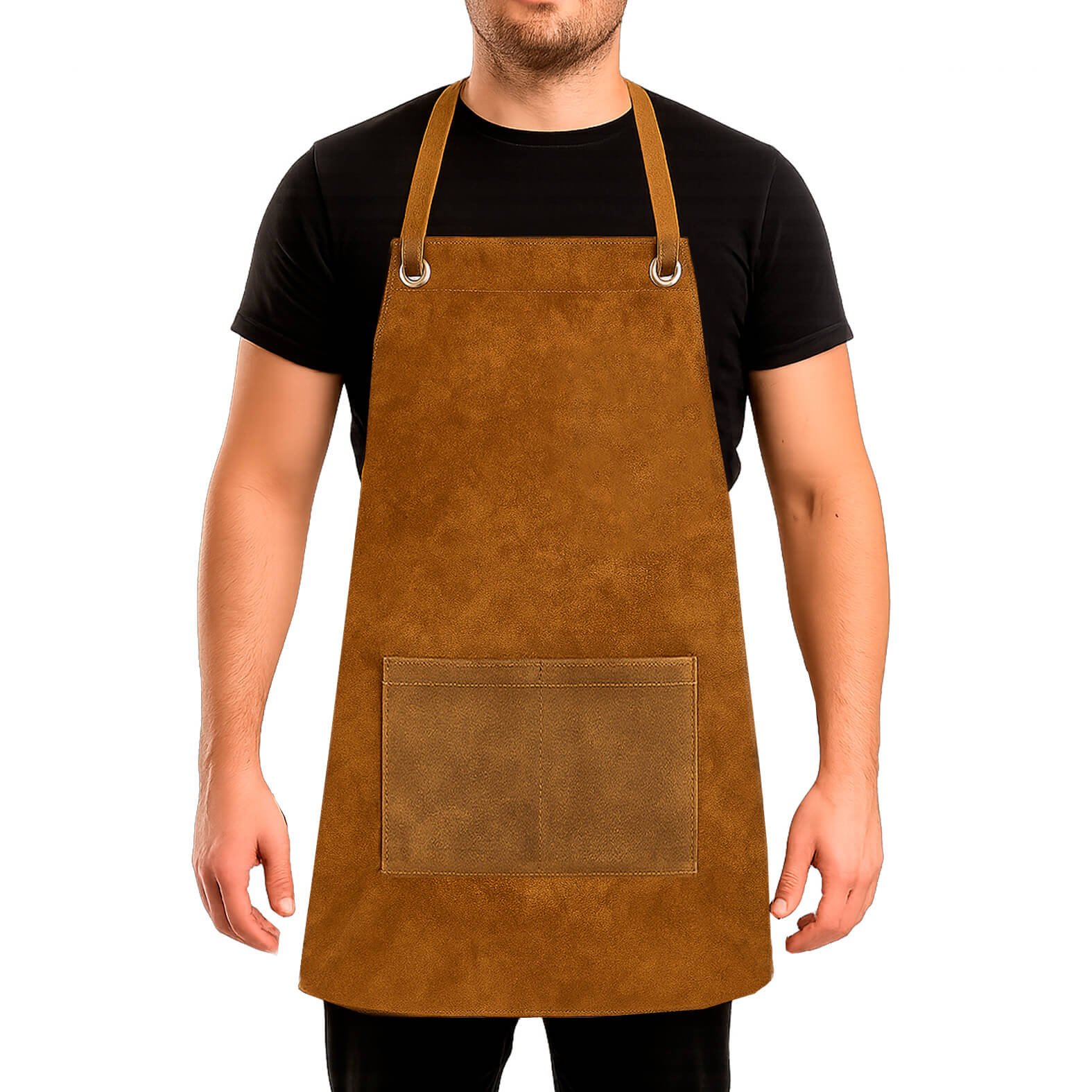 Delantal de curpiel con dos bolsas frontales, 4 arillos metálicos, correa superior ajustable y dos cintas laterales para ajuste en cintura., medidas: 55.0 x 76.0 cm, material: Curpiel, capacidad: , métodos de grabado: Serigrafía