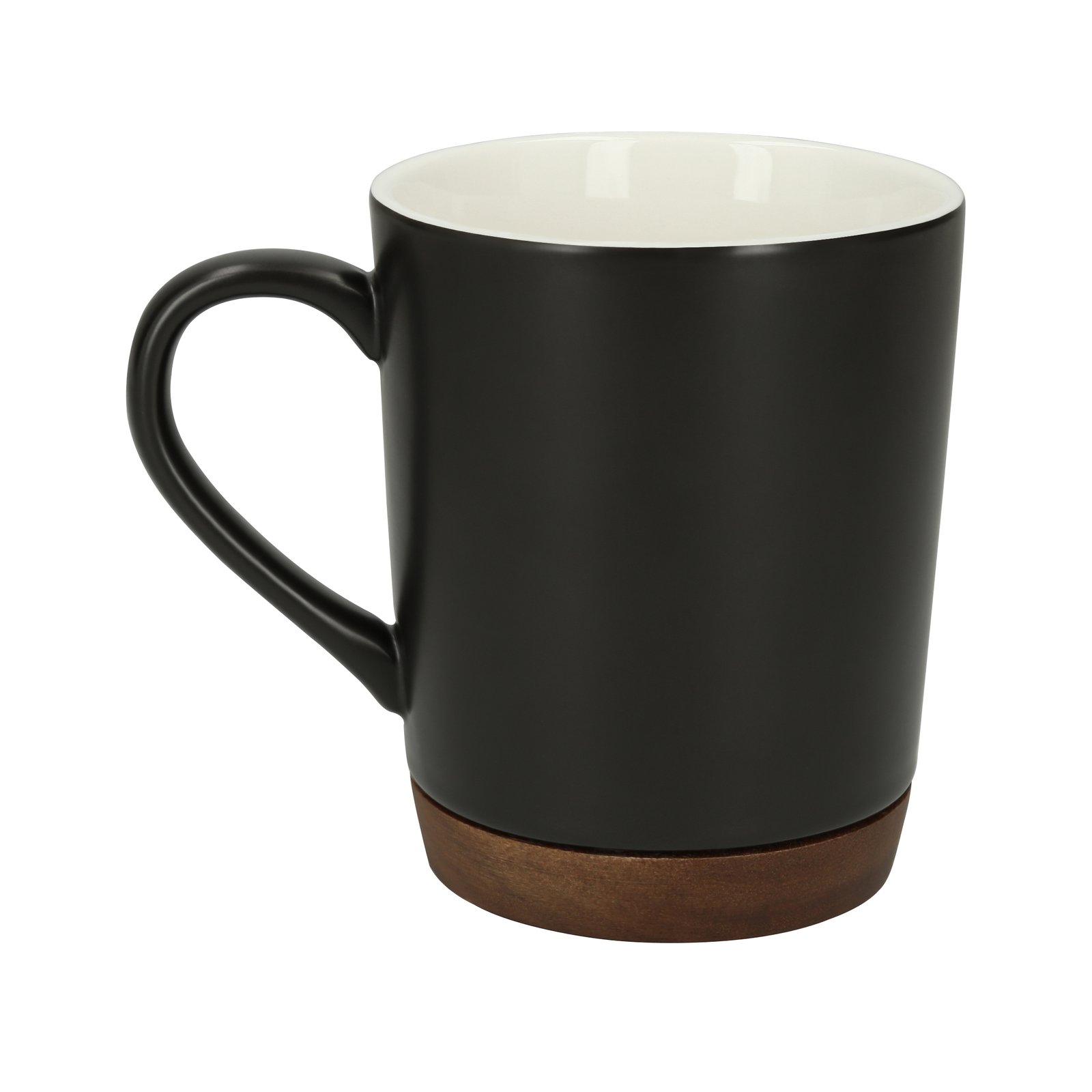 Taza de cerámica con acabado mate y base de madera., medidas: 9.0 x 11.0 cm, material: Madera / Cerámica, capacidad: 420 ml., métodos de grabado: Tampografía