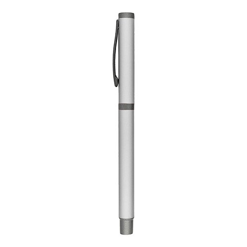 Bolígrafo metálico acabado rubber con detalles en base y tapa color gris., medidas: 1.0 x 13.3 cm, material: Metal/Rubber, capacidad: , métodos de grabado: Grabado Láser,Tampografía