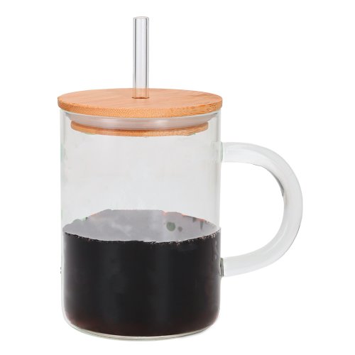 Tarro de vidrio con tapa de bambú y popote., medidas: 8.0 x 11.5 cm, material: Vidrio / Bambú, capacidad: 350 ml., métodos de grabado: Grabado Láser,Serigrafía,Tampografía