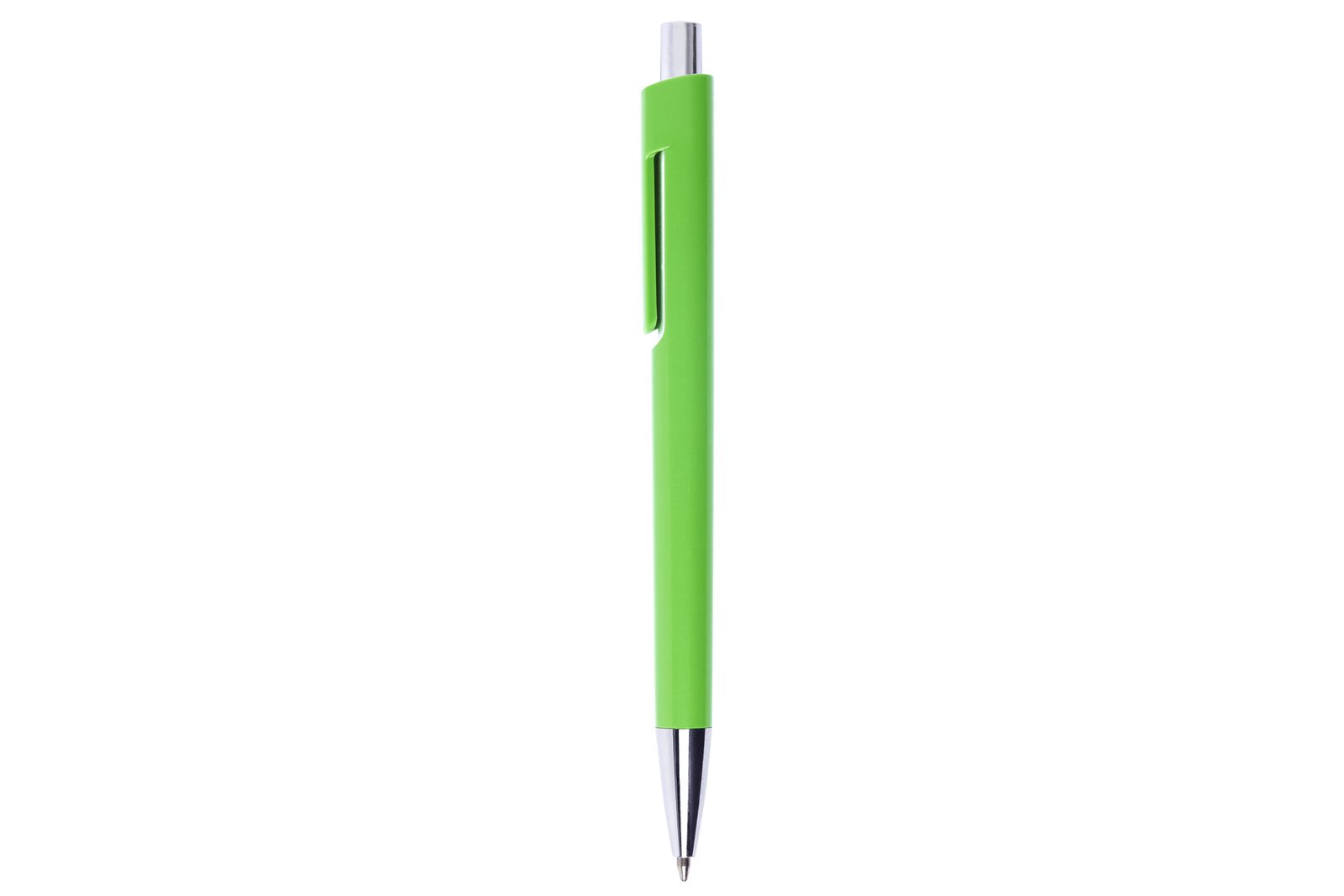 Plástico. Bolígrafo con cuerpo de color. Clip innovador. Puntera y pulsador con detalles color plata.
