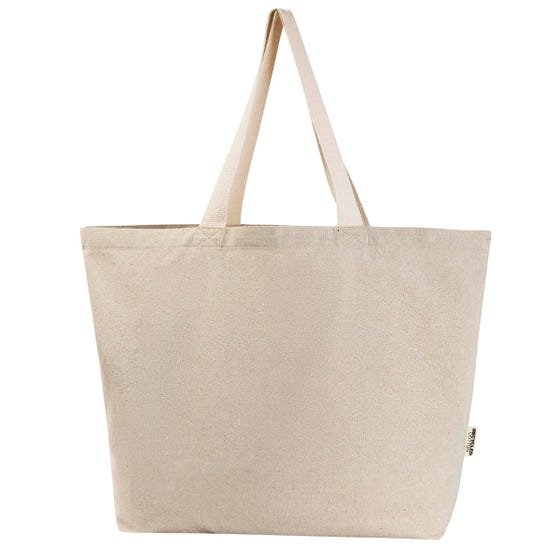 Bolsa ecológica de algodón reciclado. Con fuelle en la base y asas de algodón. Incluye un bolsillo interior con botón para mantener organizado tus artículos más pequeños. Su amplio tamaño te permite llevar todo lo necesario. Ideal para los días de playa o incluso para el supermercado.material:Algodón Reciclado,medida:57 x 39 x 18 cm