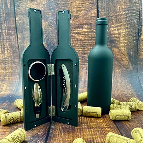 Set de vino con acabado rubber. Incluye sacacorchos de acero inoxidable, boquilla y corta gotas., medidas: 6.0 x 23.5 cm, material: Metal/Rubber, capacidad: , métodos de grabado: Serigrafía,Tampografía