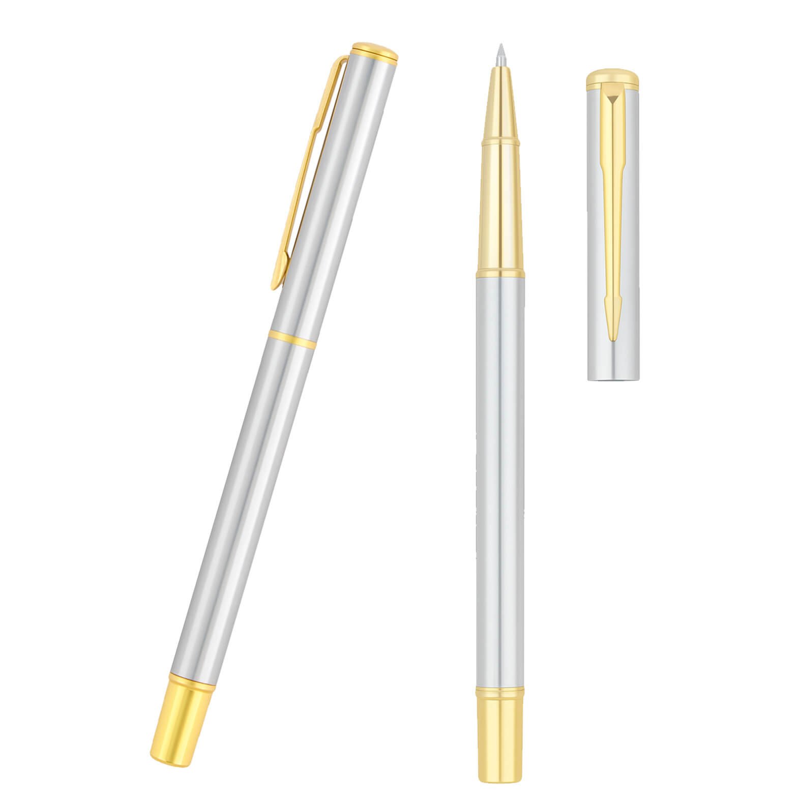 Bolígrafo metálico con clip y detalles en dorado., medidas: 1.0 x 13.5 cm, material: Metal, capacidad: , métodos de grabado: Grabado Láser,Serigrafía,Tampografía
