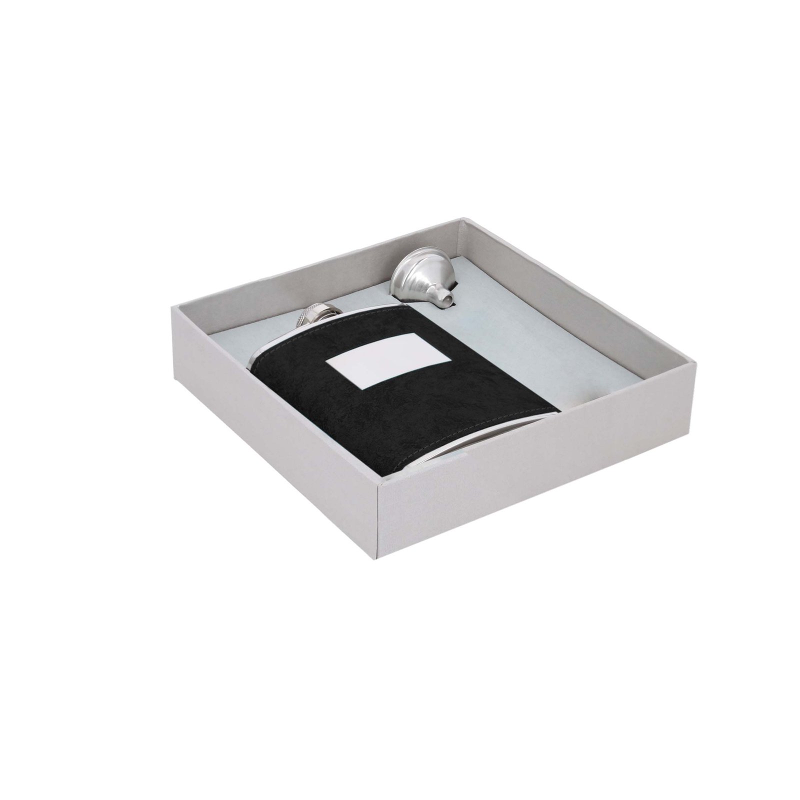 Set de licorera que incluye embudo., medidas: 9.5 x 12.1 cm, material: Acero Inoxidable / Curpiel, capacidad: 8 oz., métodos de grabado: Grabado Láser,Serigrafía,Tampografía