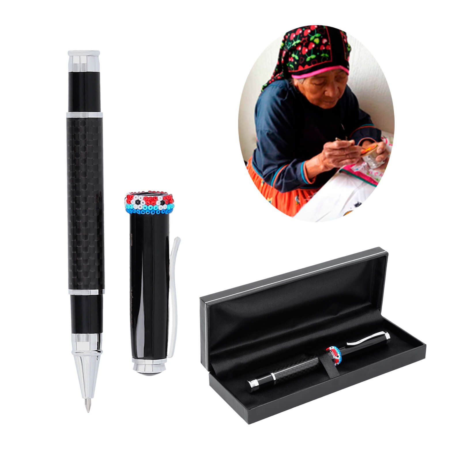 Bolígrafo de fibra de carbono con tapa metálica y estuche, decorado con arte huichol. Cada pieza está elaborada a mano con 120 chaquiras colocadas una a una por artesanos de Jalisco. Con cada compra apoyas el trabajo que representa el sustento económico de estas familias artesanas., medidas: 1.2 x 14.0 cm, material: Fibra de Carbono/Metal, capacidad: , métodos de grabado: Grabado Láser,Serigrafía,Tampografía