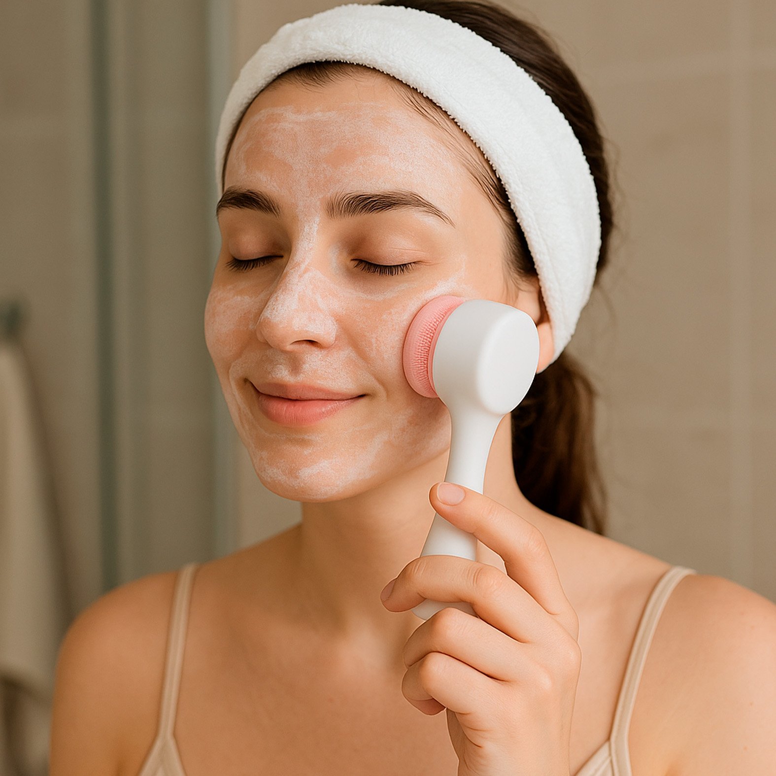 Cepillo limpiador facial de doble cara con mango ergonómico., medidas: 3.3 x 12.8 cm, material: Plástico, capacidad: , métodos de grabado: Tampografía