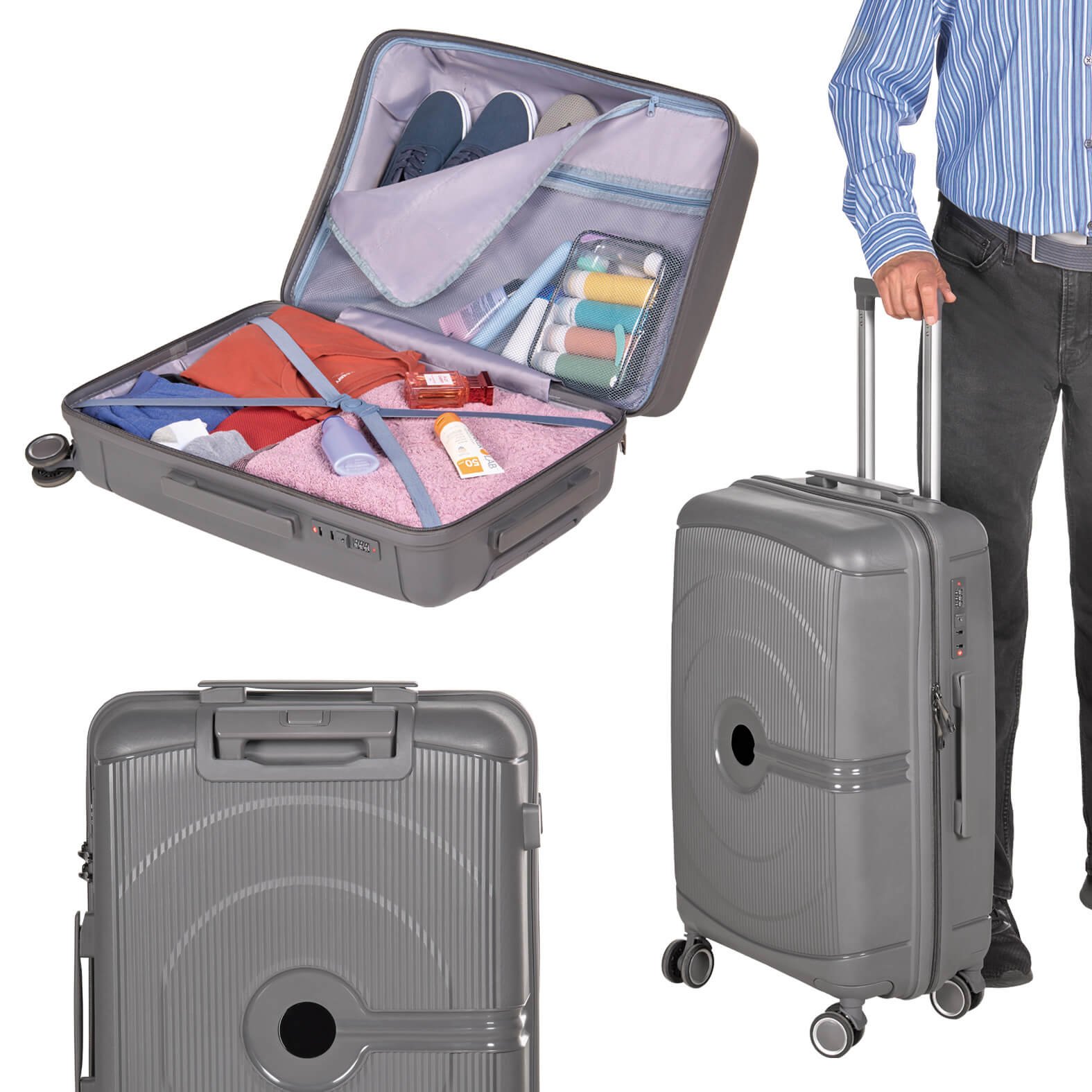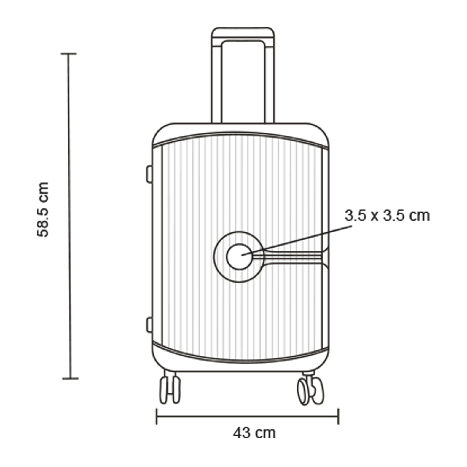 Maleta de polipropileno, resistente a golpes, ideal para viaje. Cuenta con doble rueda giratoria, asa metálica retráctil y candado de seguridad., medidas: 43.0 x 58.5 cm, material: Polipropileno, capacidad: , métodos de grabado: Grabado Láser,Serigrafía