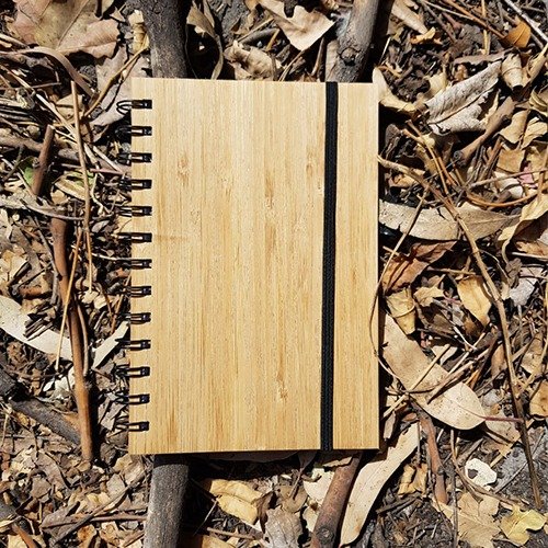 Libreta con pasta de bambú y 70 hojas rayadas., medidas: 13.0 x 17.5 cm, material: Bambú, capacidad: 70 Hojas., métodos de grabado: Grabado Láser,Serigrafía,Tampografía