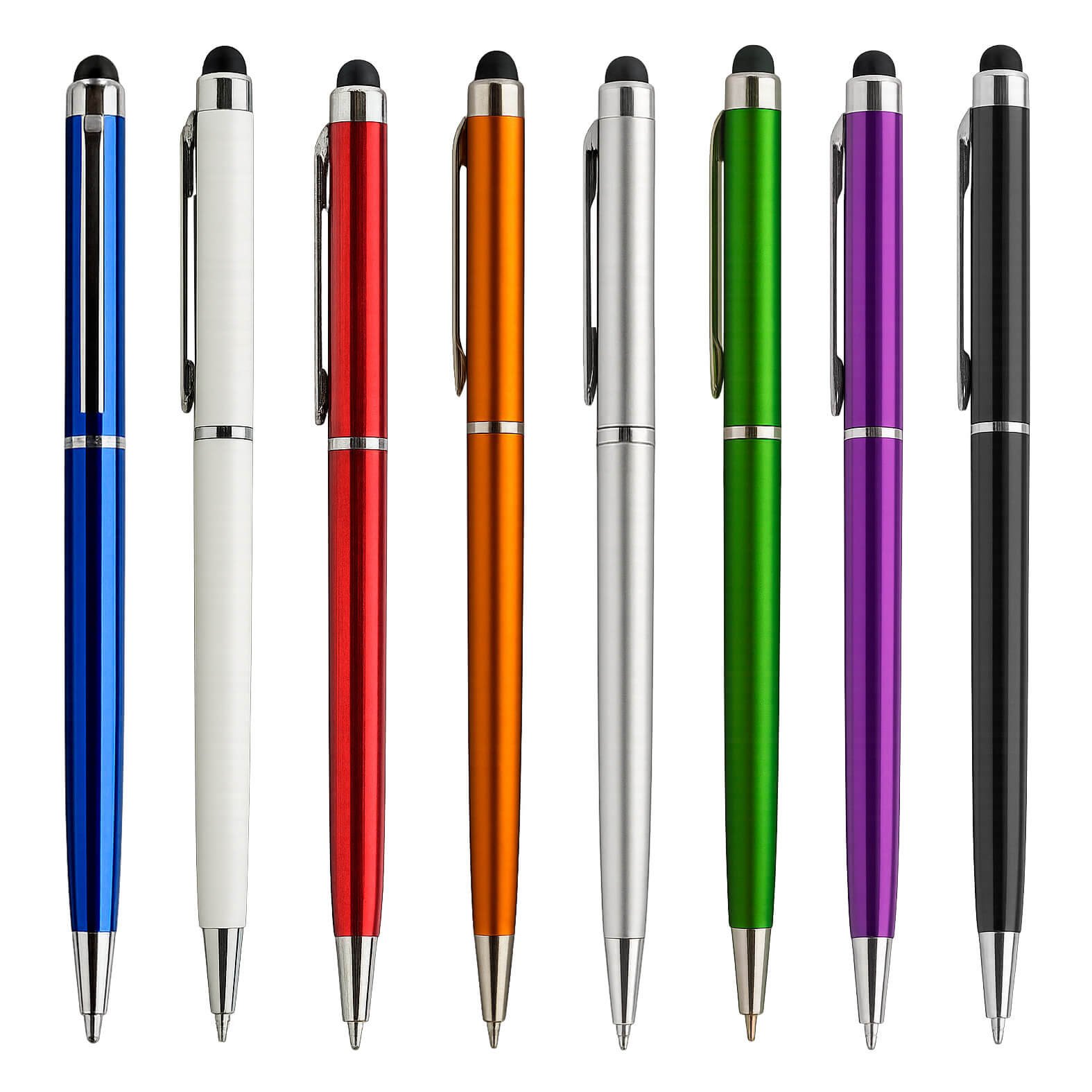 Bolígrafo de plástico con mecanismo retráctil, con apariencia metálica, clip metálico y goma touch screen., medidas: 0.6 x 13.1 cm, material: Plástico, capacidad: , métodos de grabado: Serigrafía,Tampografía