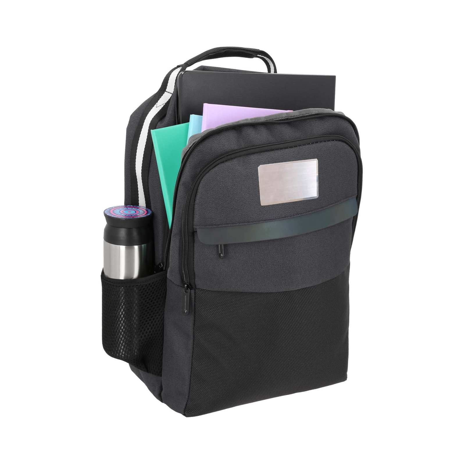 Mochila con compartimento principal, espacio para laptop de 17″, dos compartimentos frontales, malla lateral, asa y banda reflejante., medidas: 28.0 x 44.0 cm, material: Poliéster, capacidad: 11 lts, métodos de grabado: DTF,Grabado Láser,Serigrafía