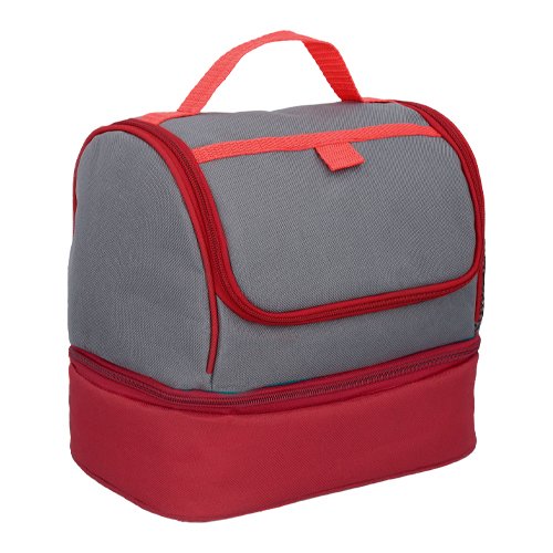 Lonchera con 2 compartimentos, interior impermeable plastificado, asa, un compartimento externo al frente y bolsillo lateral de malla., medidas: 27.0 x 23.0 cm, material: Poliéster, capacidad: , métodos de grabado: Serigrafía