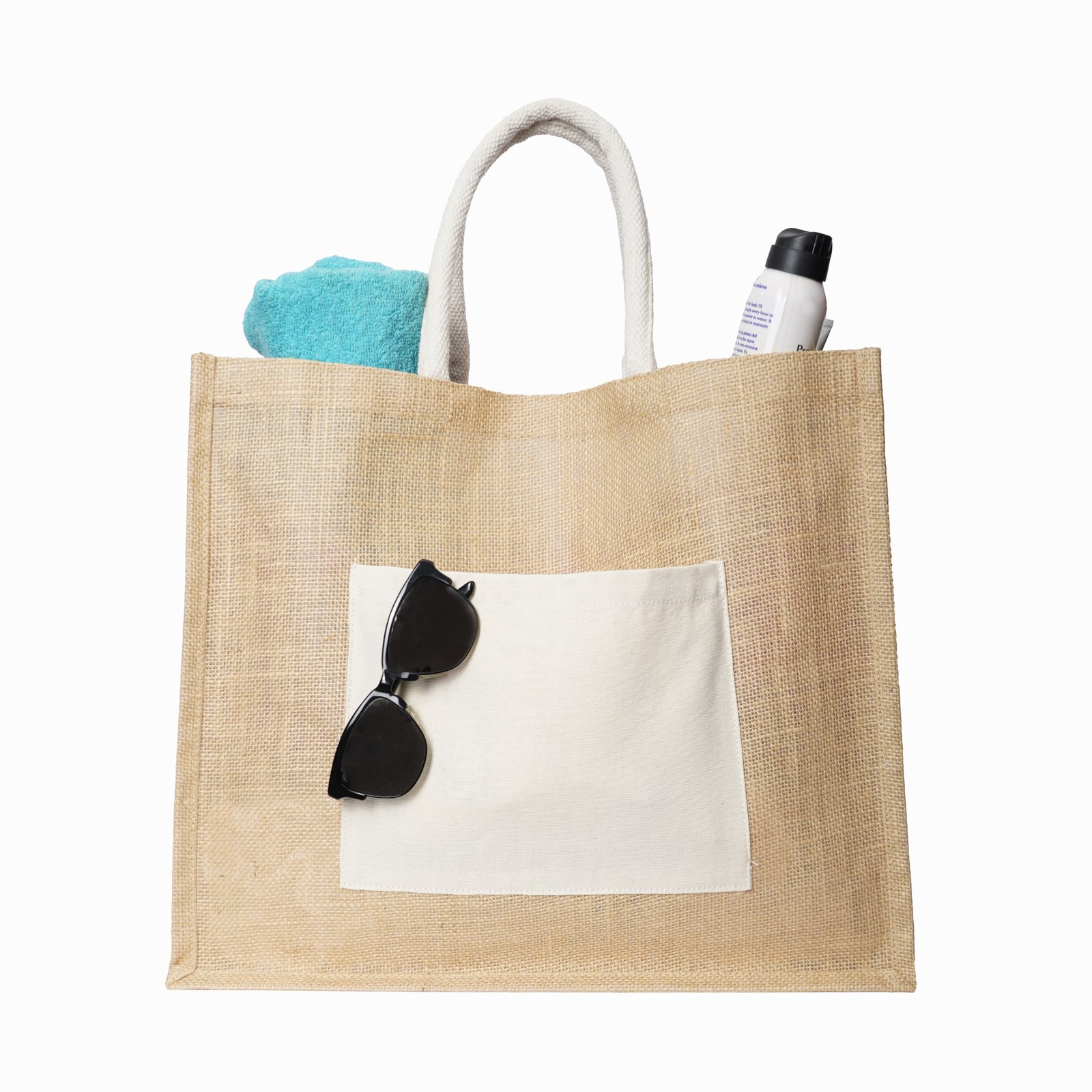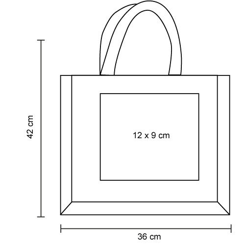 Bolsa de yute con interior laminado, asas y bolsa frontal de algodón de 220 g/m2., medidas: 36.0 x 42.0 cm, material: Yute, capacidad: , métodos de grabado: Bordado,Serigrafía