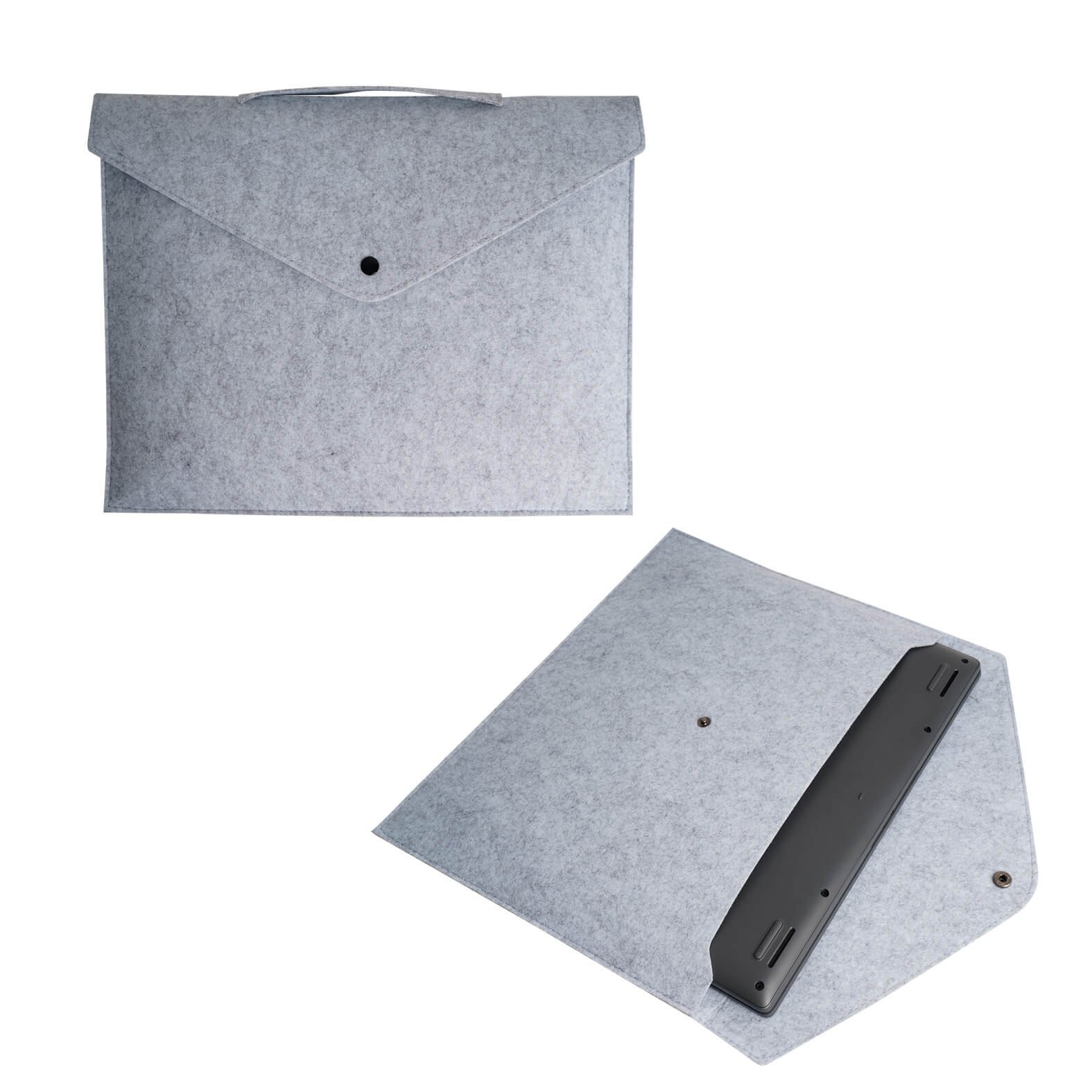 Portafolio de fieltro con un compartimento principal para laptop de hasta 15″ con broche y asas., medidas: 37.0 x 27.3 cm, material: Fieltro, capacidad: , métodos de grabado: Serigrafía
