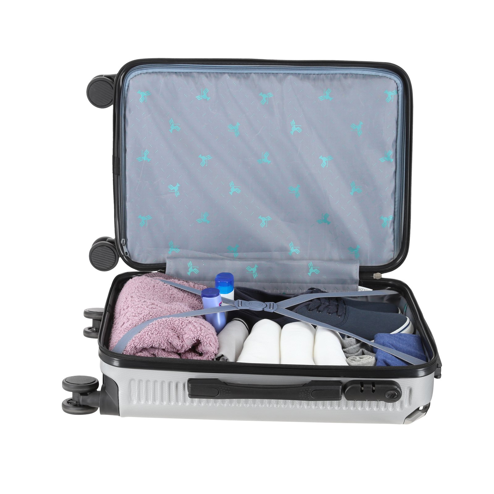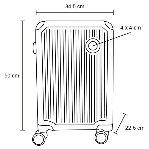 Maleta de plástico para viaje, con doble rueda giratoria, asa metálica retráctil y candado de seguridad., medidas: 34.5 x 50.0 cm, material: Plástico, capacidad: , métodos de grabado: Grabado Láser,Tampografía