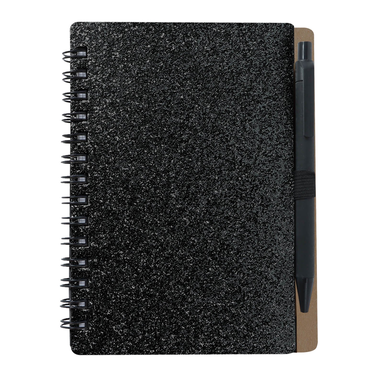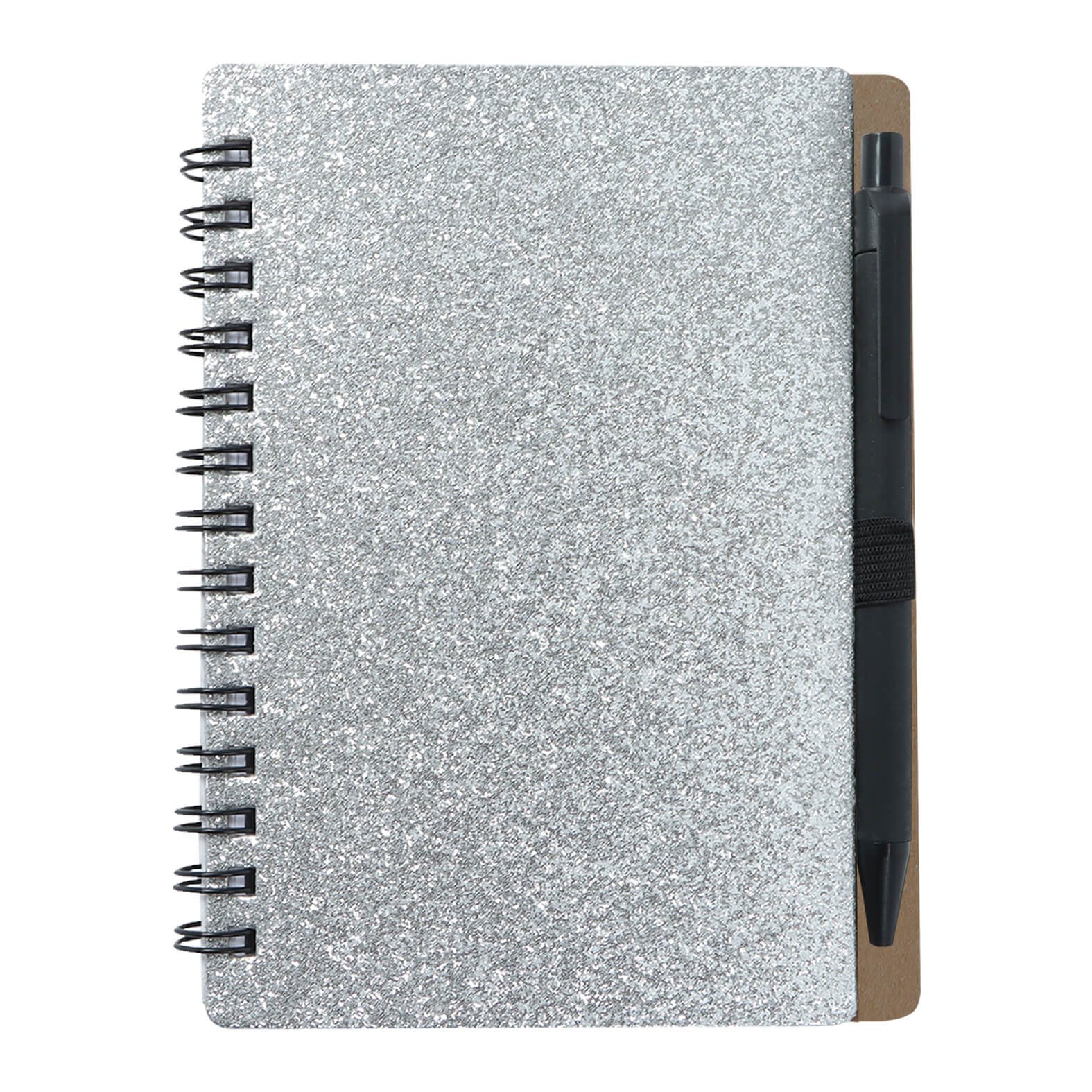 Mini libreta ecológica con espiral, purpurina, bolígrafo y 70 hojas de raya., medidas: 9.0 x 13.5 cm, material: Cartón, capacidad: 70 Hojas, métodos de grabado: Serigrafía,Tampografía