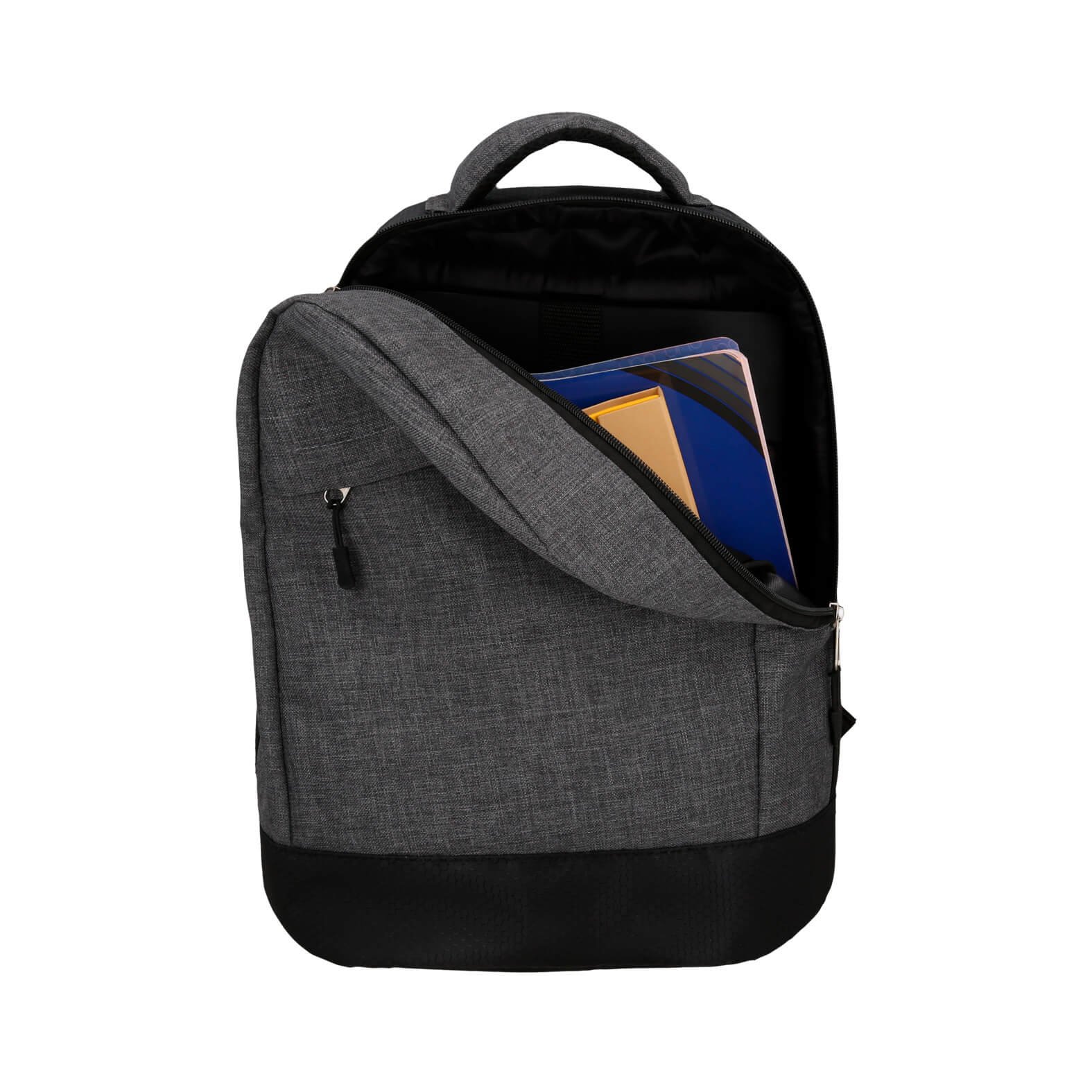 Mochila de 2 compartimentos, 1 compartimento principal con porta laptop, 1 compartimento secundario frontal con cierre, tirantes acolchados y asa superior., medidas: 30.5 x 42.0 cm, material: Poliéster, capacidad: 21 lts, métodos de grabado: Serigrafía