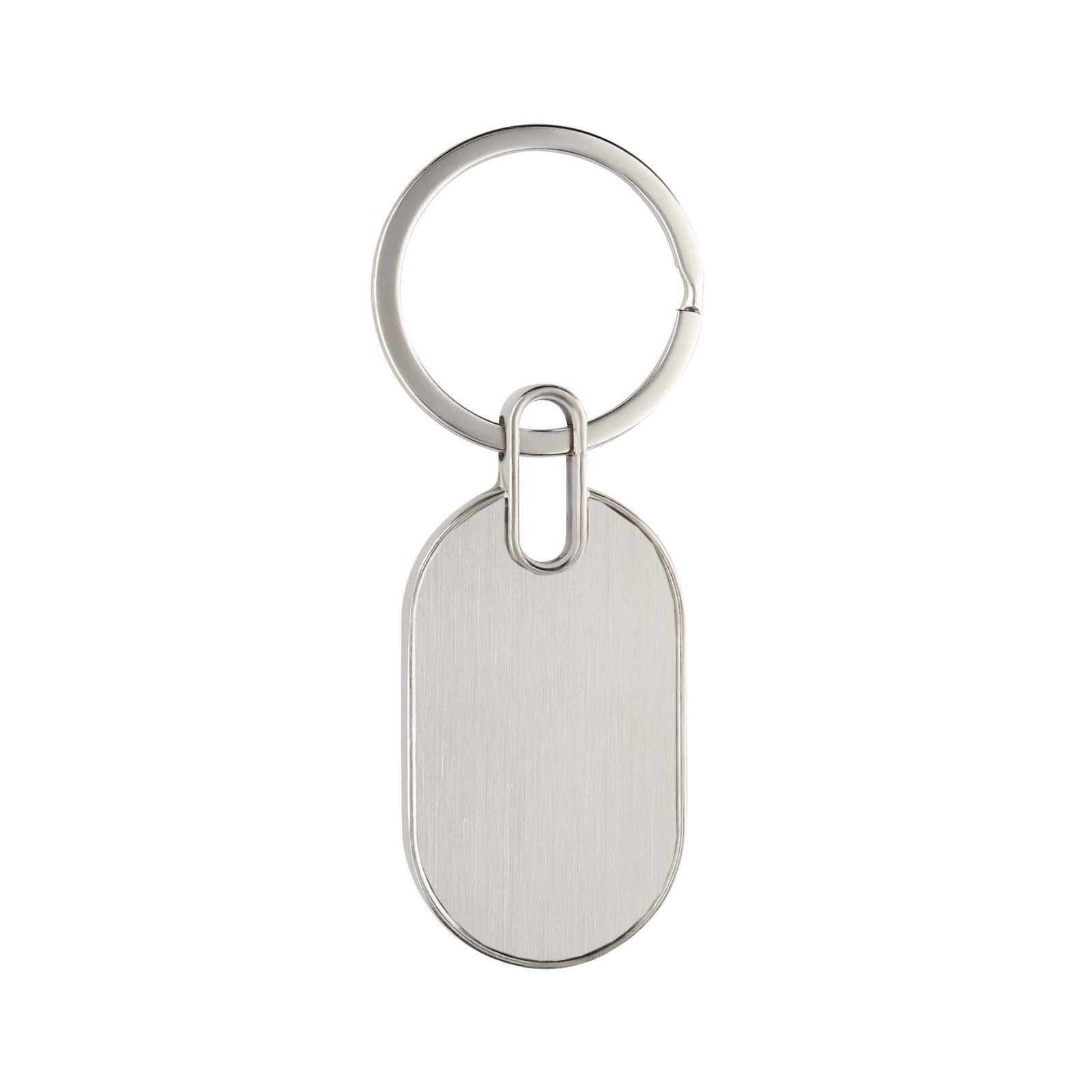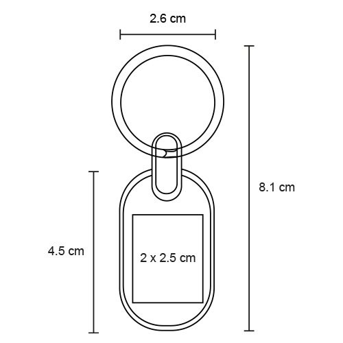 Llavero metálico de placa solida en forma de ovalo con arillo reforzado., medidas: 2.6 x 8.1 cm, material: Metal, capacidad: , métodos de grabado: Grabado Láser,Tampografía