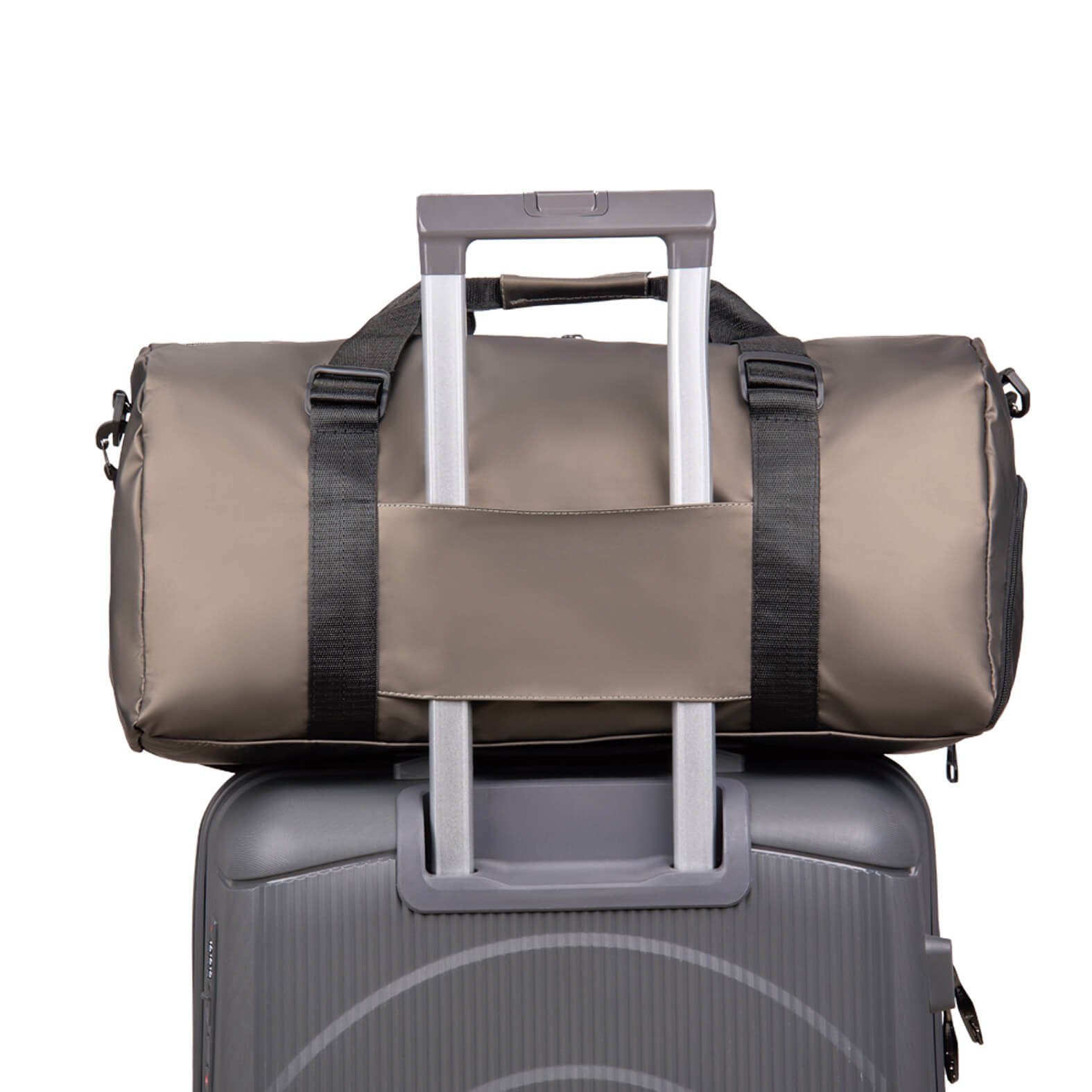 Maleta deportiva con compartimento principal con bolsillos internos, zapatera, banda para carry-on, asas con velcro y correa ajustable., medidas: 47.0 x 24.0 cm, material: Poliéster, capacidad: 22 lts, métodos de grabado: Serigrafía