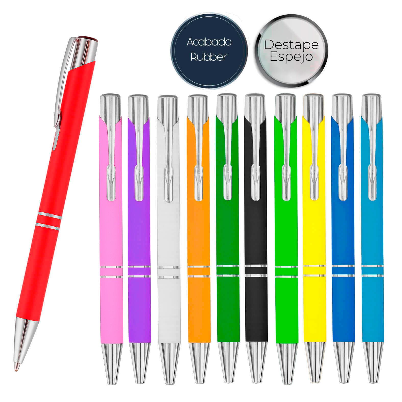 Bolígrafo metálico con acabado rubber, clip y mecanismo de click., medidas: 1.0 x 14.0 cm, material: Metal/Rubber, capacidad: , métodos de grabado: Grabado Láser