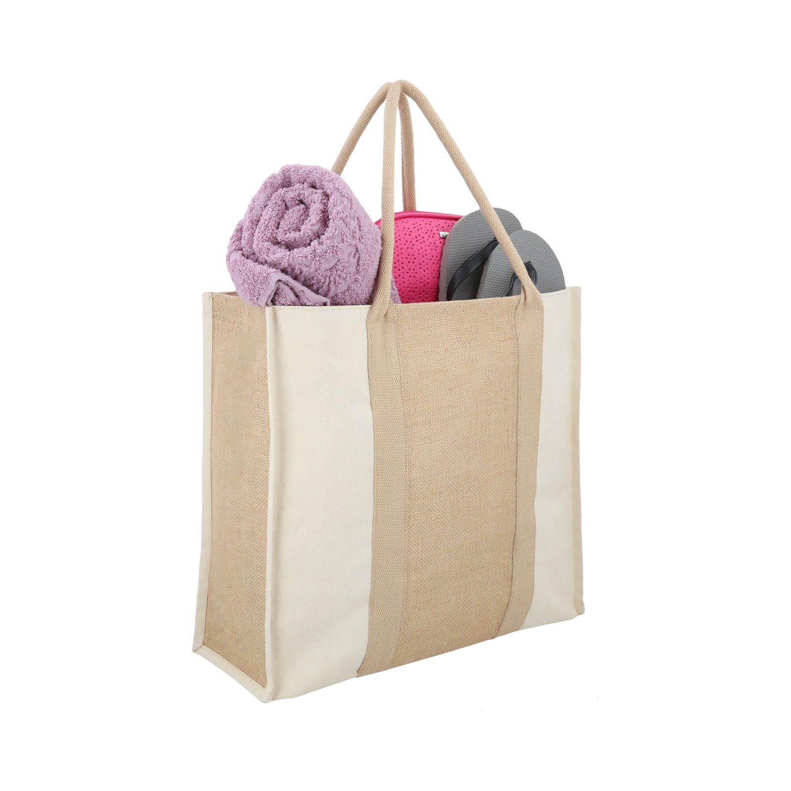 Bolsa de yute con loneta, interior laminado con asas, fuelle y cierre., medidas: 45.5 x 40.0 cm, material: Algodón / Yute, capacidad: , métodos de grabado: DTF,Grabado Láser,Serigrafía