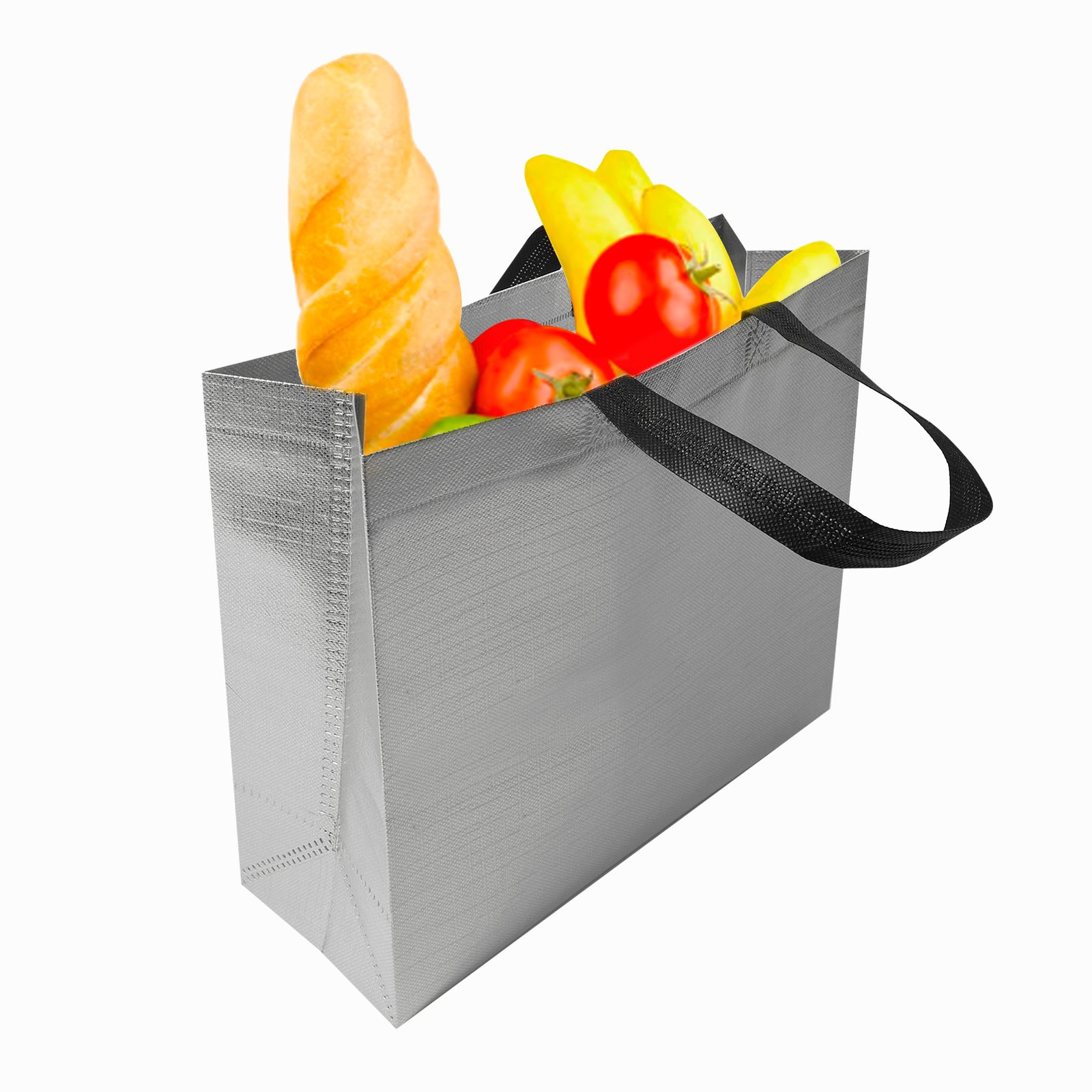 Bolsa ecológica metalizada y laminada con asas de non woven de 97 gr/m2, termoselladas., medidas: 31.8 x 34.0 cm, material: Non woven, capacidad: , métodos de grabado: Serigrafía