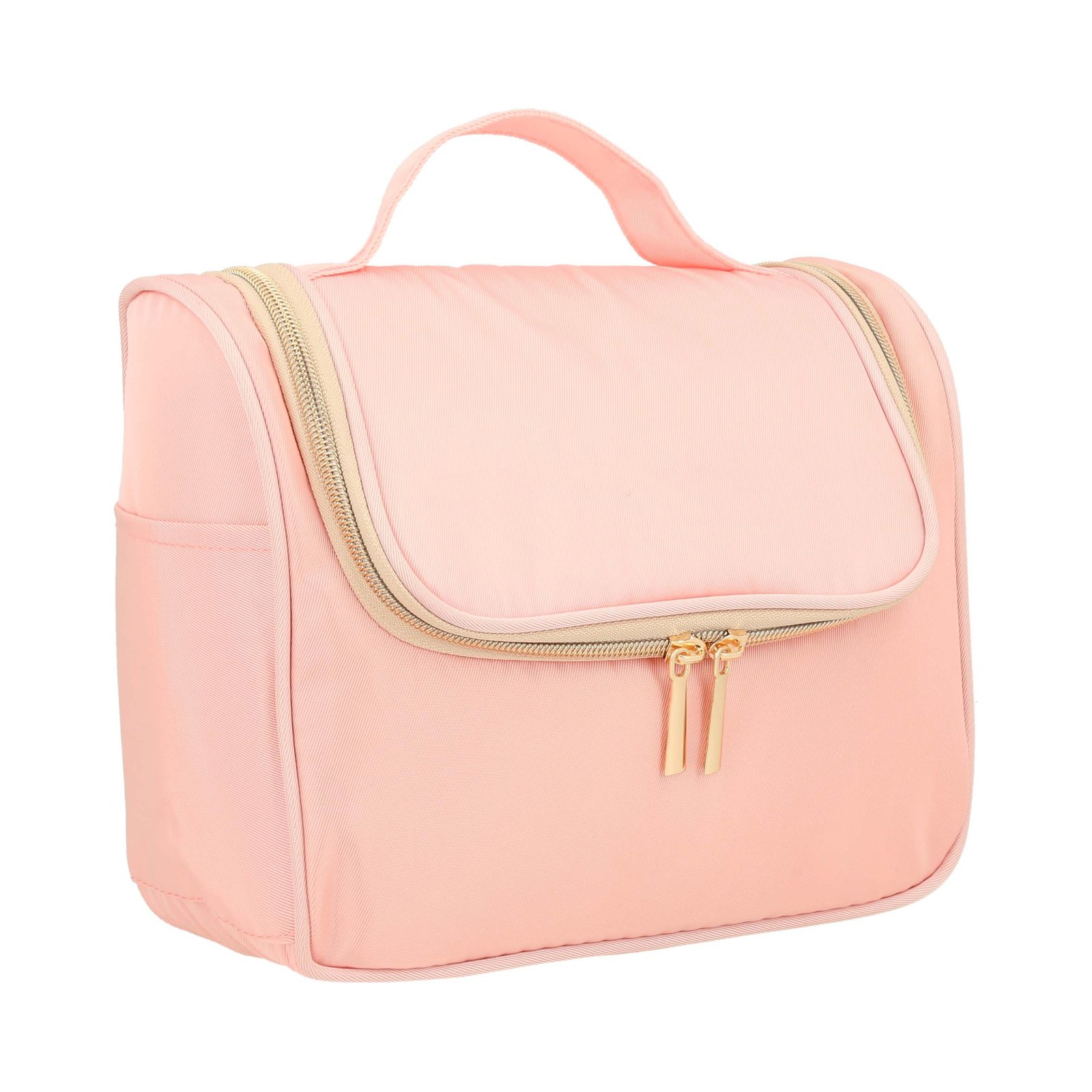 Estuche de viaje, en la parte interior cuenta con un gancho, 3 separadores, 2 bolsas de malla laterales y un compartimento de malla con cierre en la parte superior, por la parte exterior incluye 2 bolsas laterales y asa., medidas: 22.5 x 21.5 cm, material: Poliéster, capacidad: , métodos de grabado: Serigrafía