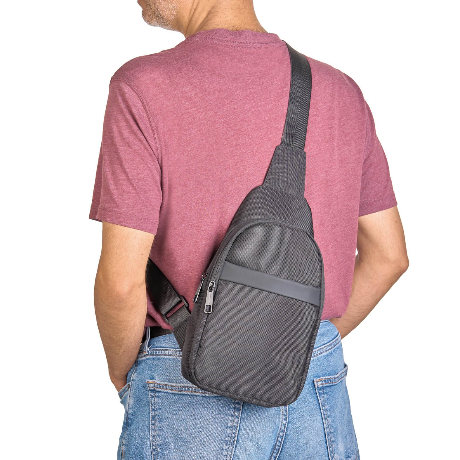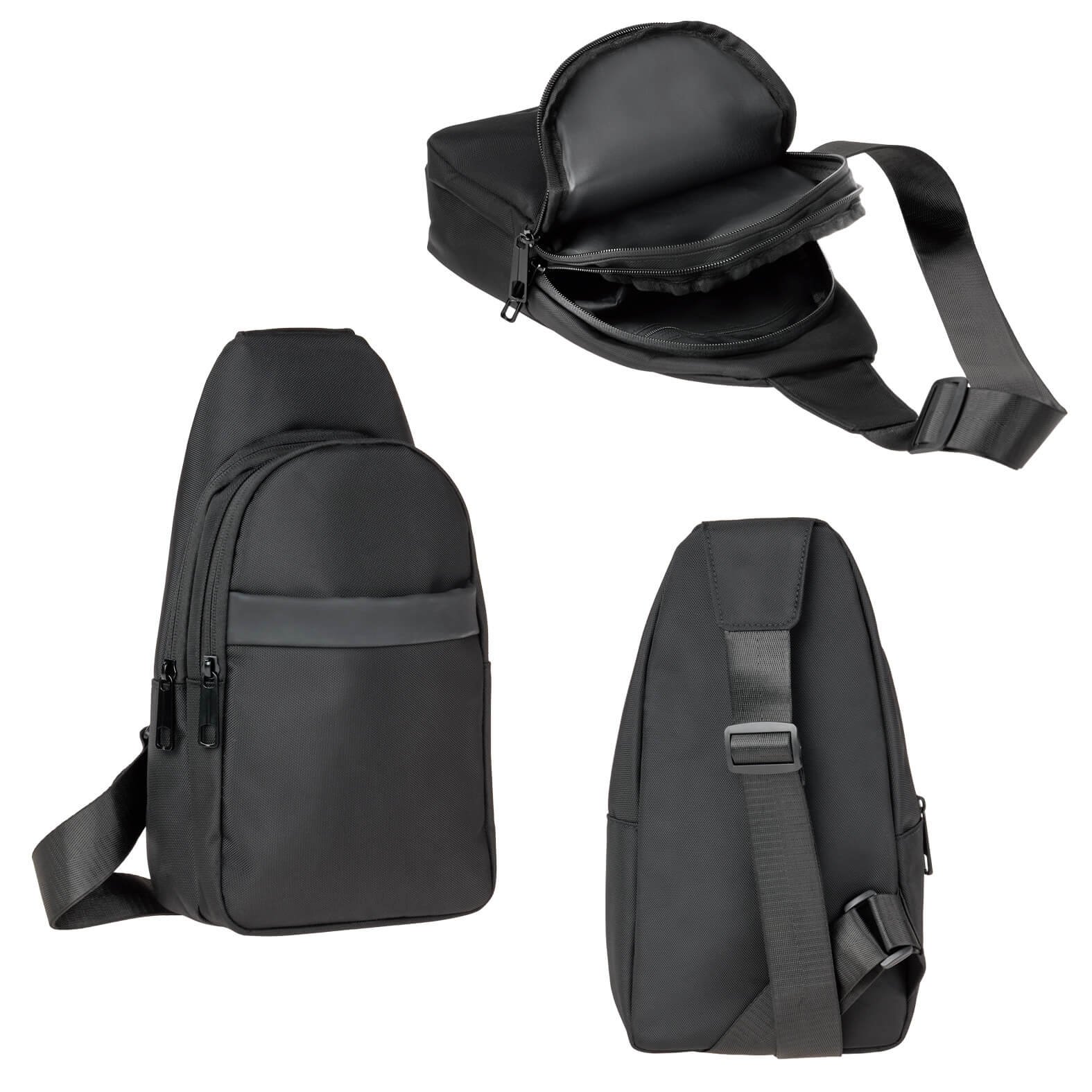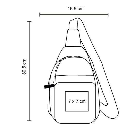 Bolsa de hombro de poliéster con compartimento principal con bolsillo interno, bolsa frontal con cierre y compartimento abierto, así como correa ajustable., medidas: 16.5 x 30.5 cm, material: Poliéster, capacidad: , métodos de grabado: Serigrafía
