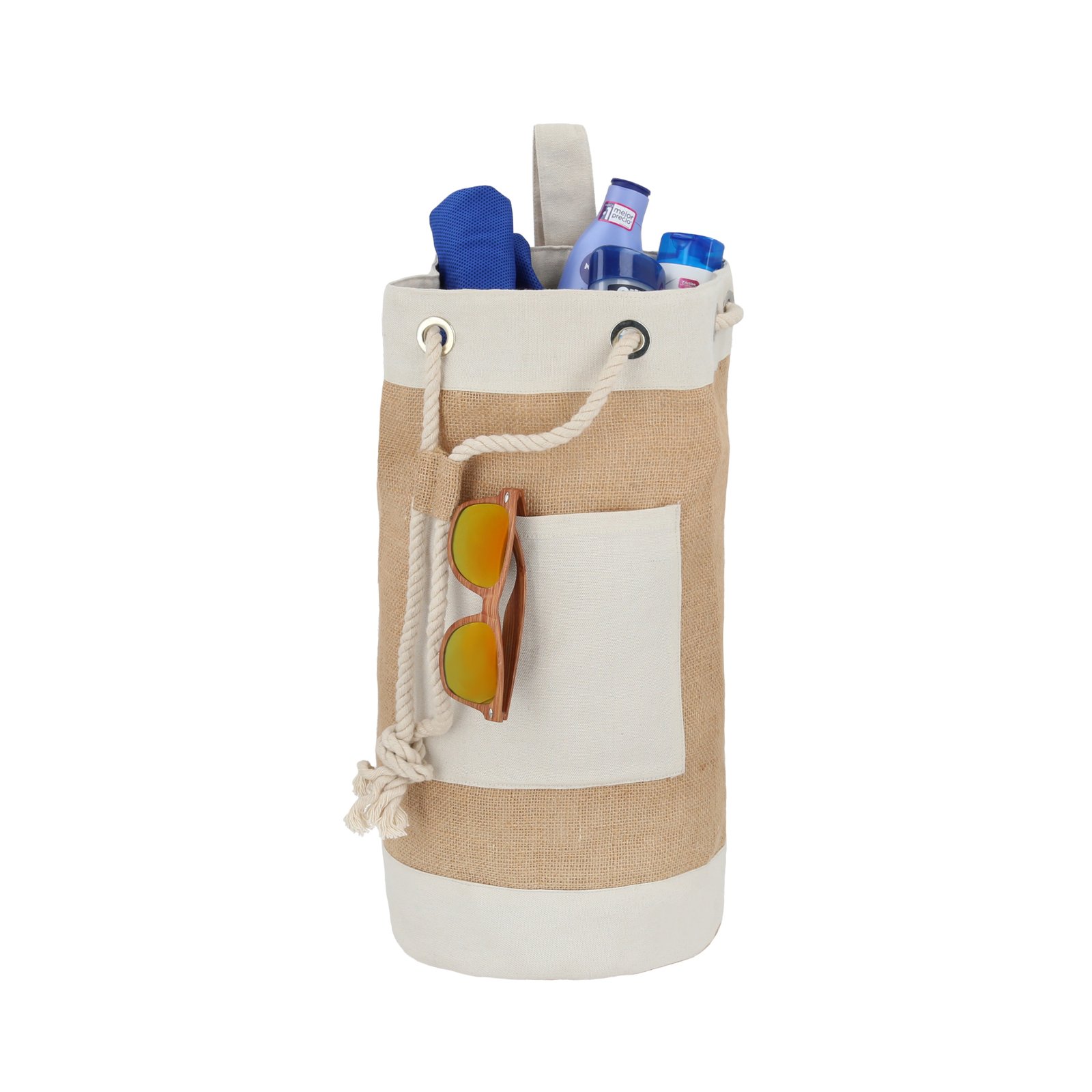 Mochila de yute con forro, 2 compartimentos en la parte interior, correa no ajustable y cordones de algodón., medidas: 23.0 x 46.5 cm, material: Yute, capacidad: , métodos de grabado: DTF,Serigrafía