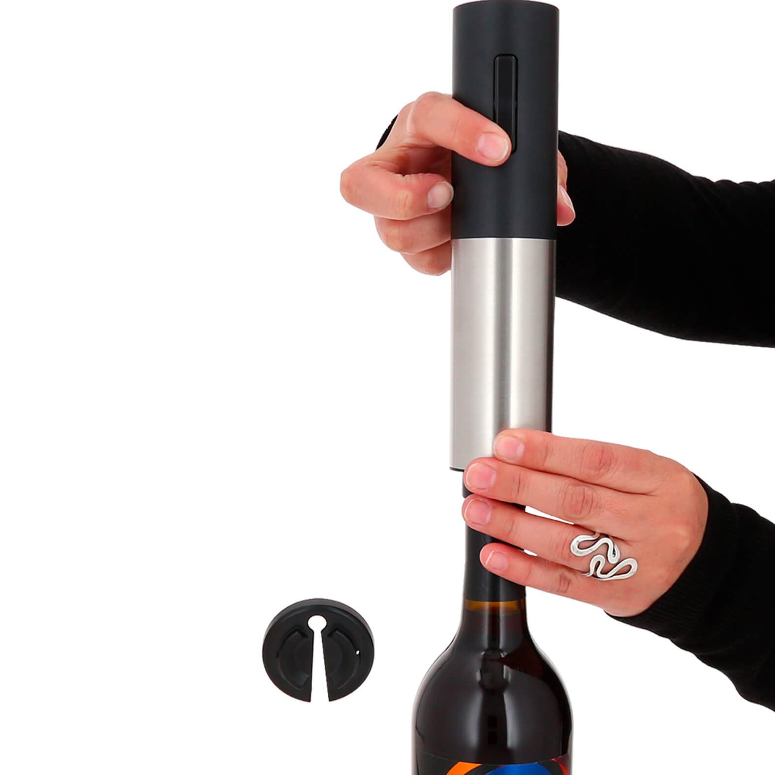 Sacacorchos para vinos automático recargable con corta etiqueta. Incluye cable de carga tpo C., medidas: 4.6 x 19.8 cm, material: Plástico, capacidad: , métodos de grabado: Grabado Láser,Serigrafía,Tampografía
