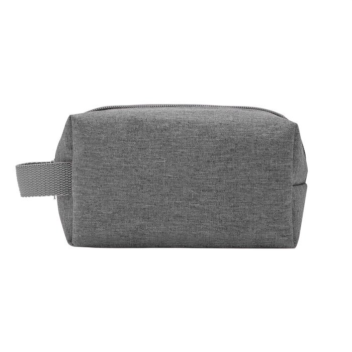 Necessaire con amplio compartimento. Interior forrado en Poliéster 210D. Cierre con tirador metálico y asa lateral en tela de color gris. Medidas: 17 x 9,5 x 8 cm.  Materiales: Poliéster 300D.