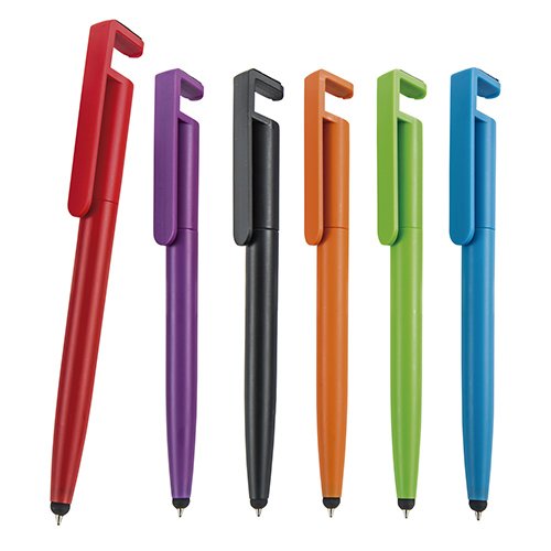 Bolígrafo de plástico, mecanismo retráctil, goma touch screen, limpiador de pantalla y soporte para celular., medidas: 1.1 x 14.9 cm, material: Plástico, capacidad: , métodos de grabado: Serigrafía,Tampografía