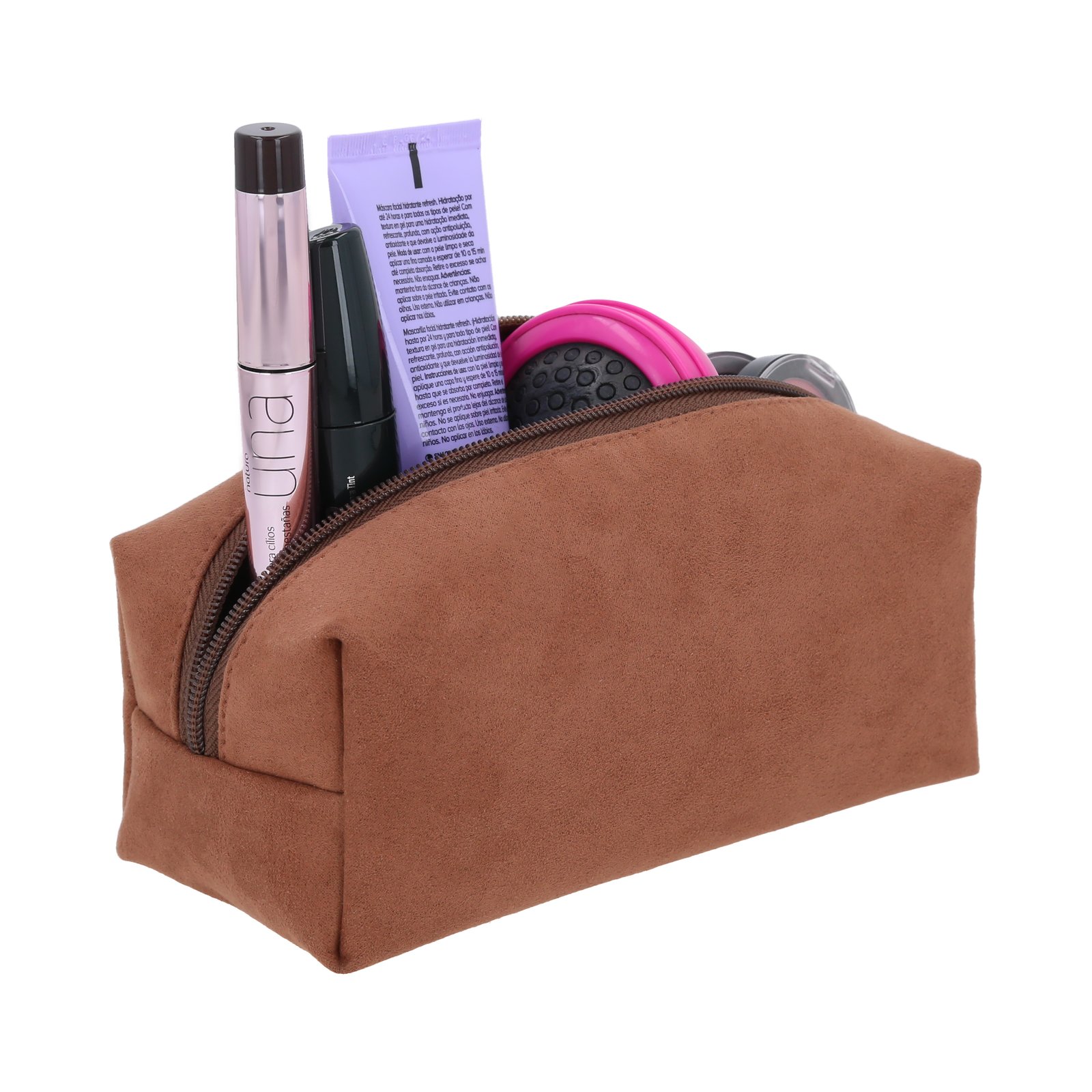 Cosmetiquera de gamuza con cierre., medidas: 18.0 x 8.0 cm, material: Gamuza, capacidad: , métodos de grabado: Serigrafía