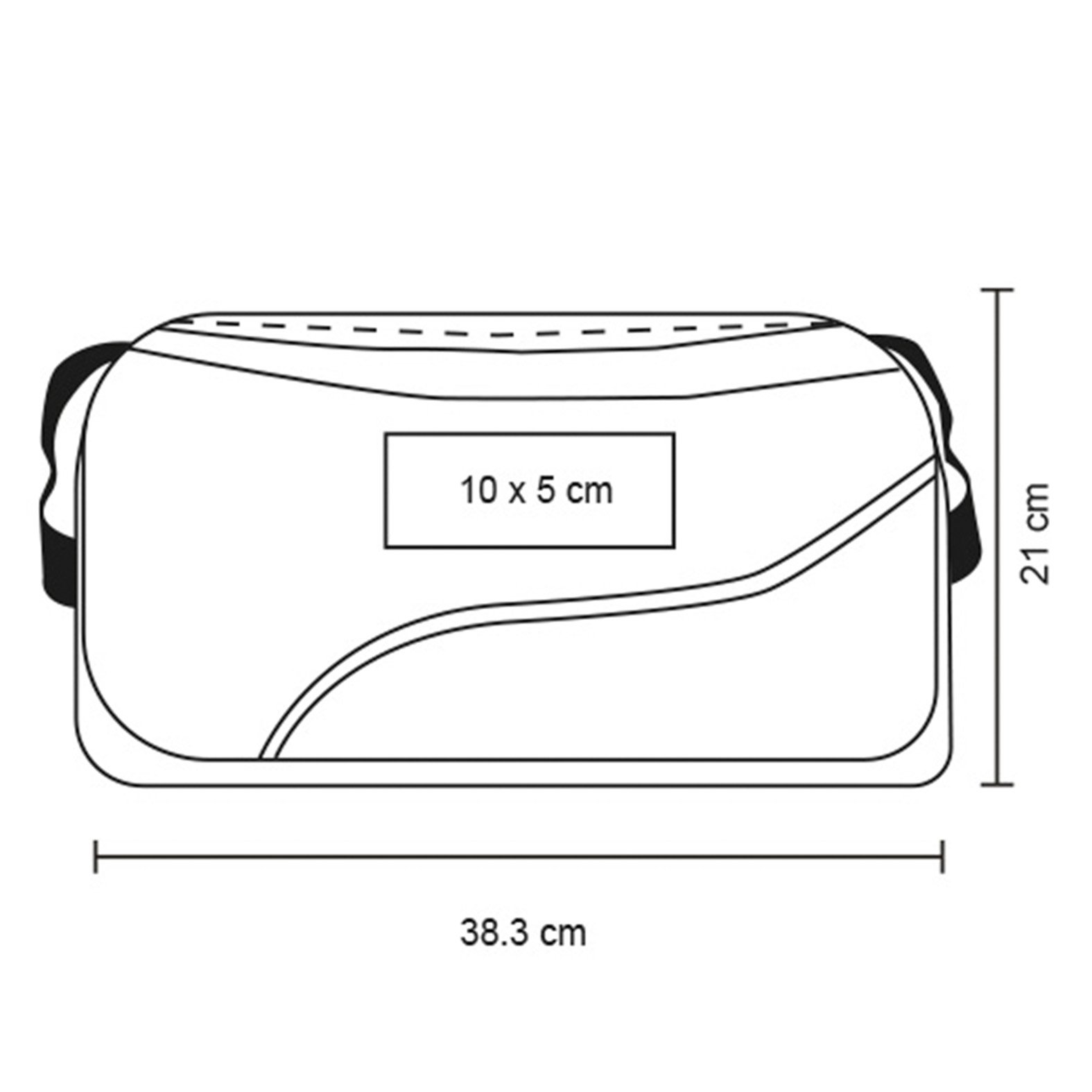 Maleta deportiva de poliéster con compartimento principal y correa ajustable., medidas: 38.3 x 21.0 cm, material: Poliéster, capacidad: 14 lts, métodos de grabado: Serigrafía