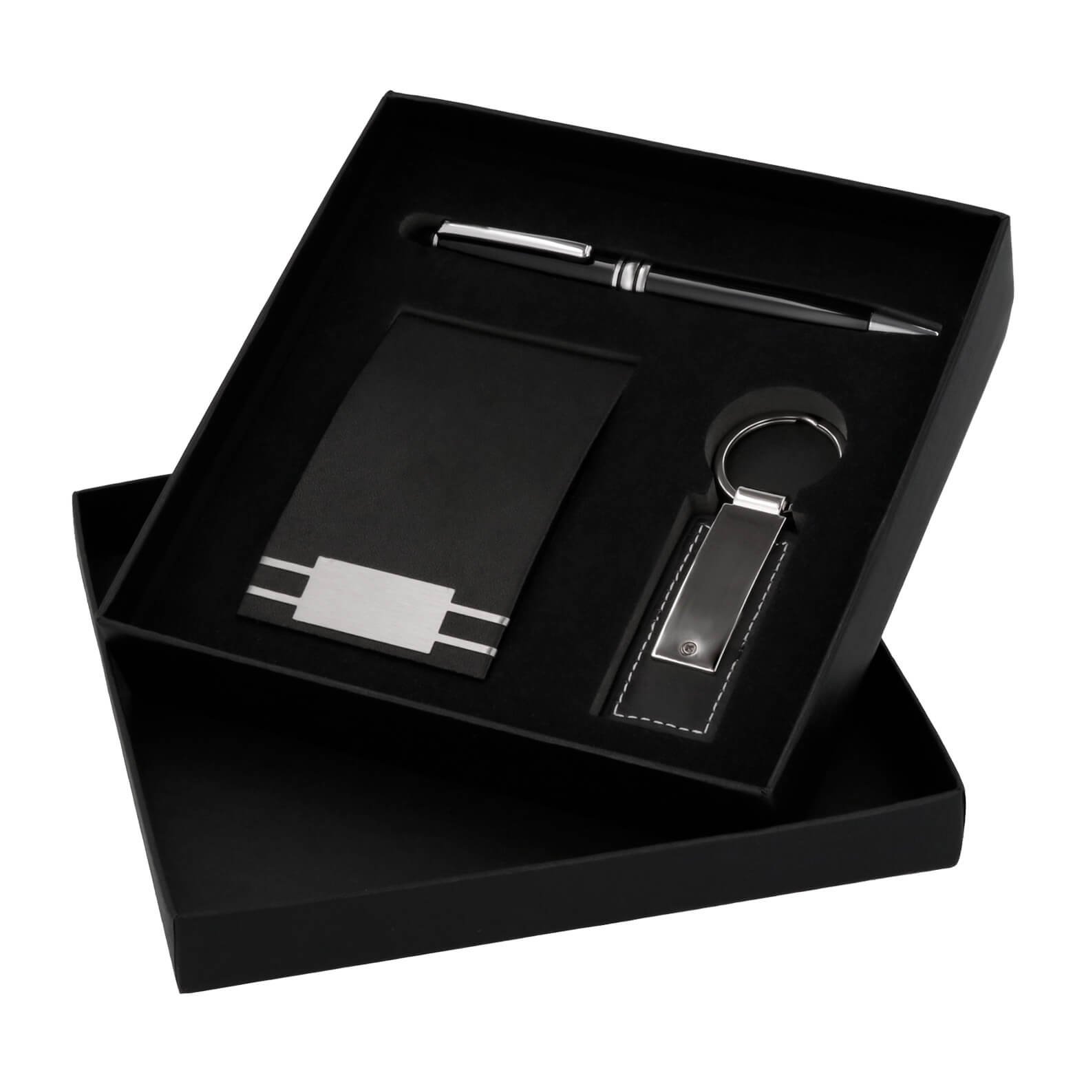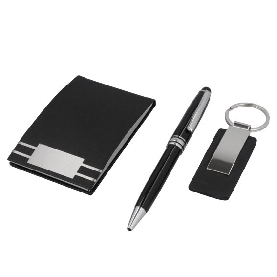 Set ejecutivo: Incluye llavero metálico y curpiel, tarjetero, bolígrafo metálico y estuche de regalo., medidas: 16.5 x 17.0 cm, material: Metal / Curpiel, capacidad: , métodos de grabado: Grabado Láser,Tampografía