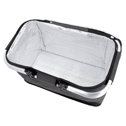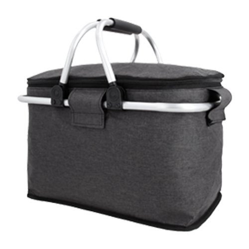 Canasta de picnic plegable con interior térmico. Cuenta con un borde y asas de aluminio para mayor refuerzo y sujeción., medidas: 39.0 x 24.5 cm, material: Poliéster, capacidad: 18.4 lts, métodos de grabado: Serigrafía