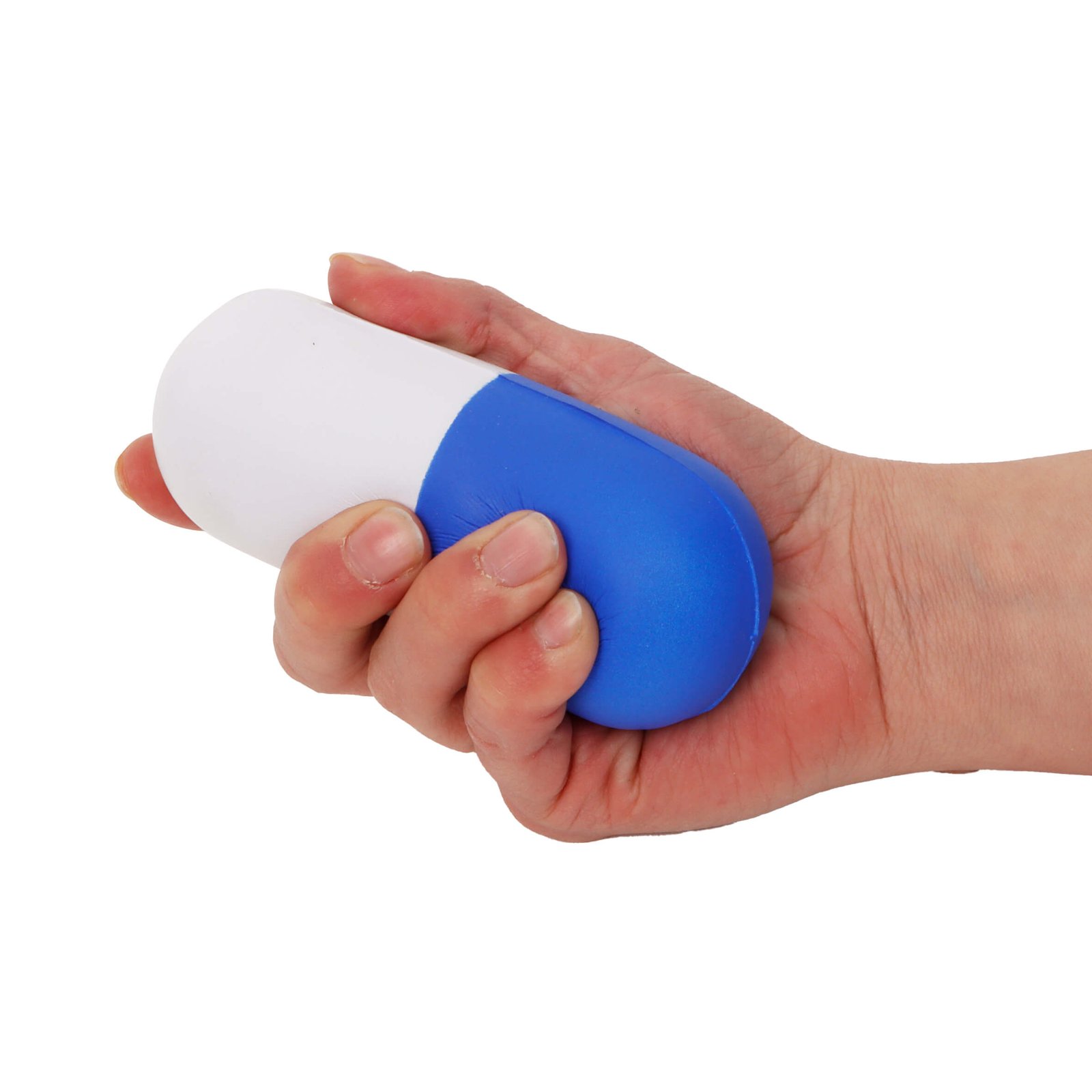 Antiestrés en forma de píldora., medidas: 11.2 x 4.5 cm, material: Poliuretano, capacidad: , métodos de grabado: Tampografía