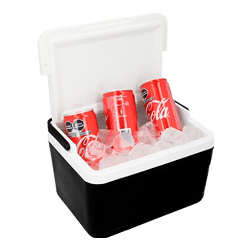 Hielera plástica de doble pared con asa superior y capacidad para 6 latas de 355 ml., medidas: 24.5 x 16.0 cm, material: Plástico, capacidad: 5 lts., métodos de grabado: Serigrafía,Tampografía