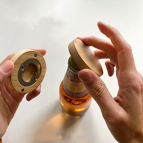 Destapador de bambú con imán en la base., medidas: 6.0 x 0.0 cm, material: Bambú / Imán, capacidad: , métodos de grabado: Grabado Láser,Serigrafía,Tampografía