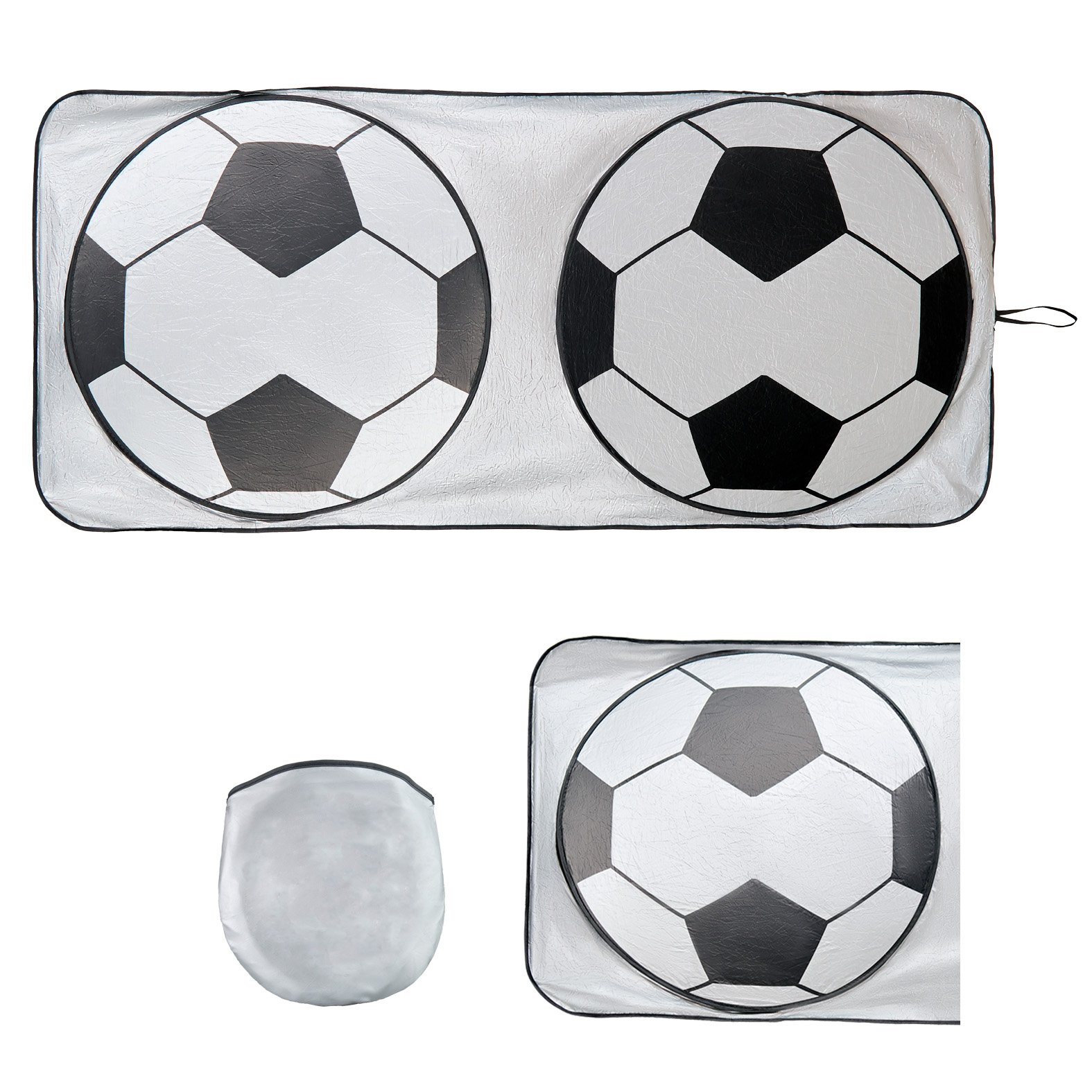 Parasol panorámico plegable de poliéster para auto con impresión de balón y funda para guardar., medidas: 150.5 x 65.5 cm, material: Poliéster, capacidad: , métodos de grabado: Serigrafía
