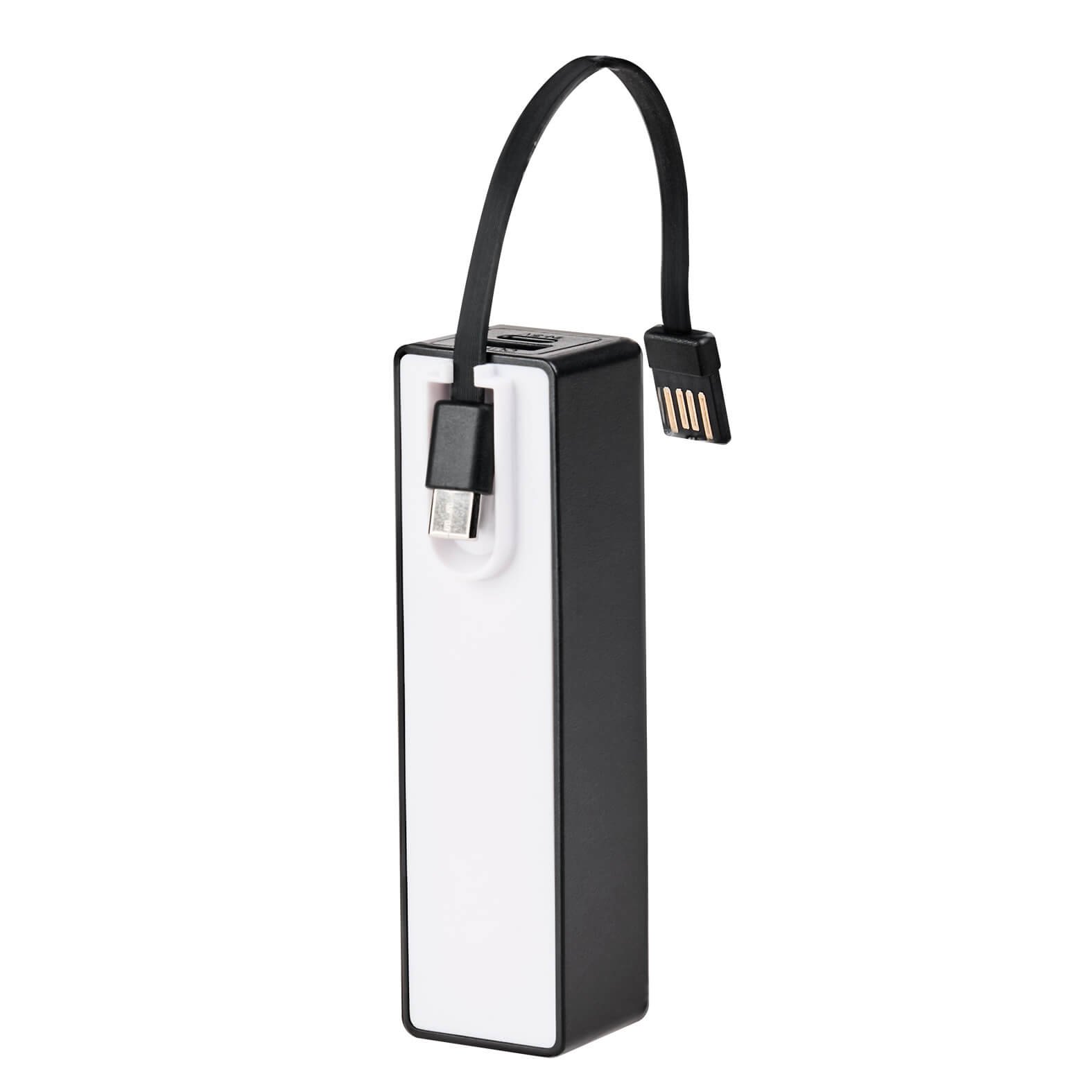 Power Bank de 3,000 mAh con puerto USB y tipo C además de un cable que funciona como conector y cable de carga. Material: PlásticoCapacidad: 3,000 mAhMedidas del producto Alto: 2.9 cm. Ancho: 6.5 cm.