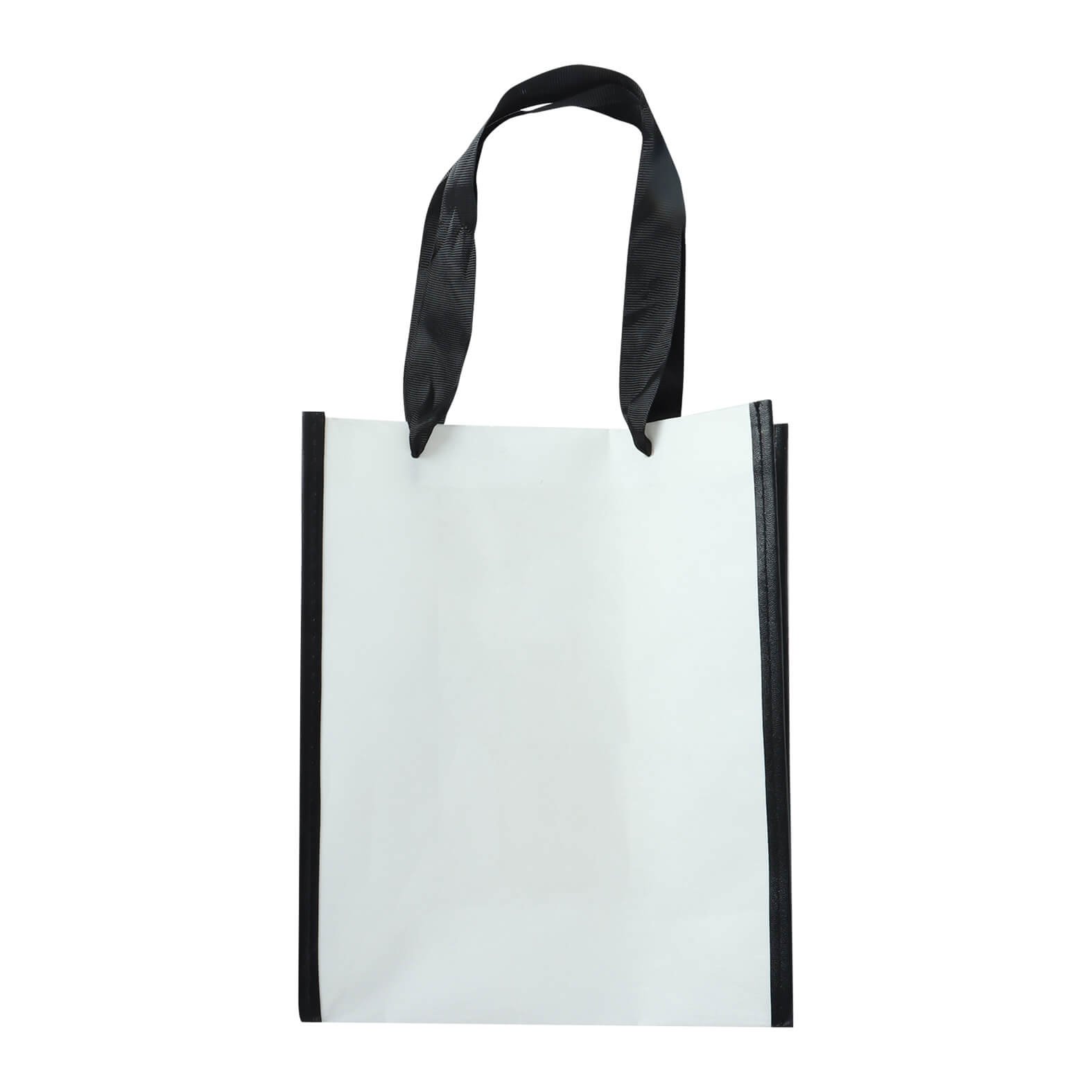 Bolsa ecológica de R-PET cosida y con asas de tela de 130 gr/m2., medidas: 22.0 x 28.5 cm, material: RPET, capacidad: , métodos de grabado: DTF,Serigrafía