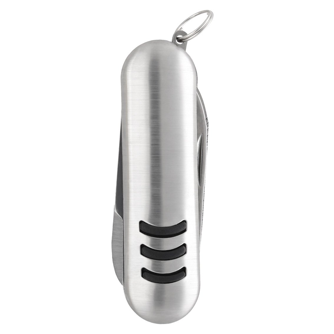 Mini navaja metálica con 3 funciones que contiene: tijeras y doble navaja con lima, cuenta con arillo para usar como llavero., medidas: 1.6 x 6.0 cm, material: Metal, capacidad: , métodos de grabado: Grabado Láser,Tampografía