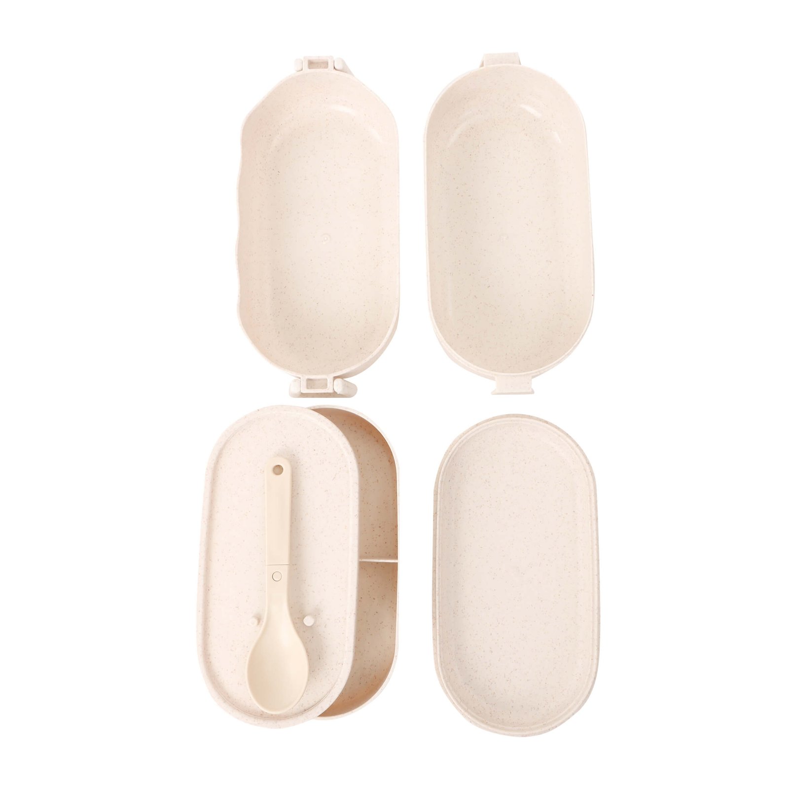 Contenedor de alimentos con dos compartimentos principales, separador de comida, cuchara y broches laterales., medidas: 18.0 x 8.5 cm, material: Plástico, capacidad: 800 ml, métodos de grabado: Serigrafía,Tampografía
