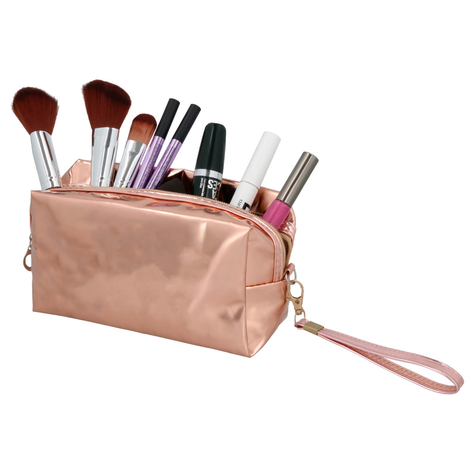 Cosmetiquera de PVC con acabado metálico, cierre, correa intercambiable y fuelle., medidas: 18.0 x 11.0 cm, material: PVC, capacidad: , métodos de grabado: Serigrafía