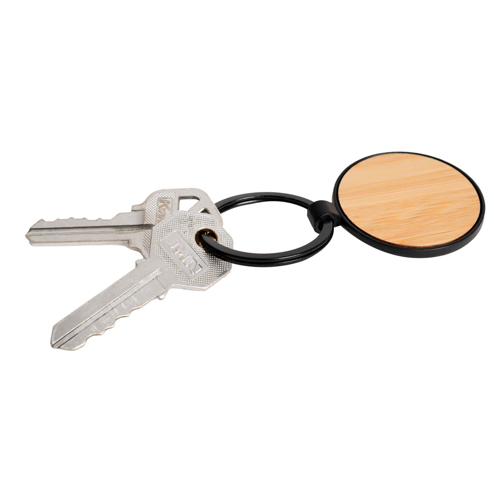 Llavero circular metalico con bambú y aro reforzado., medidas: 4.0 x 4.0 cm, material: Metal / Bambú, capacidad: , métodos de grabado: Grabado Láser,Serigrafía,Tampografía
