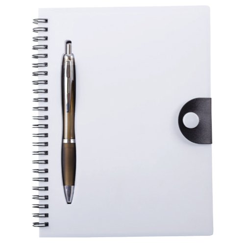 Libreta de 80 hojas, cubierta de plástico, espiral metálico y bolígrafo., medidas: 15.0 x 20.0 cm, material: Plástico, capacidad: 80 Hojas., métodos de grabado: Serigrafía