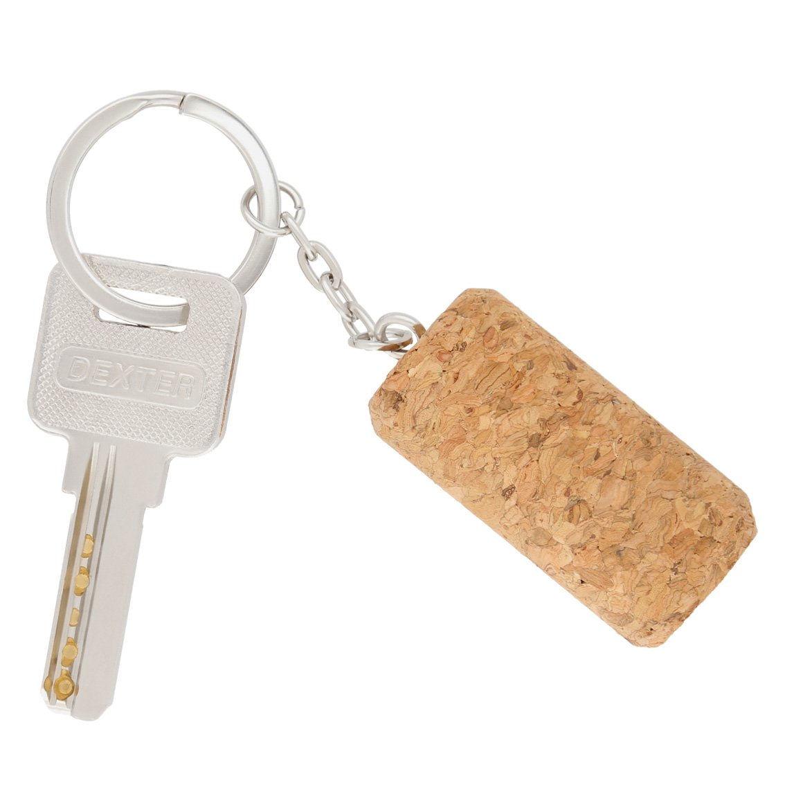 Llavero de corcho con arillo metálico forma cilíndrica., medidas: 2.0 x 4.5 cm, material: Corcho, capacidad: , métodos de grabado: Grabado Láser,Tampografía