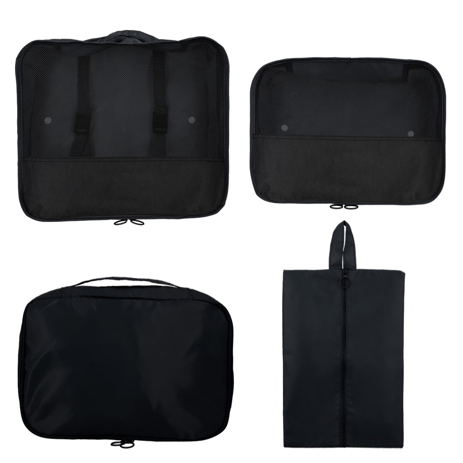 Set de 5 bolsas organizadoras de equipaje, que incluye: 4 bolsas de diferentes tamaños con asas y 1 zapatera., medidas: 39.0 x 30.5 cm, material: Poliéster, capacidad: , métodos de grabado: Serigrafía