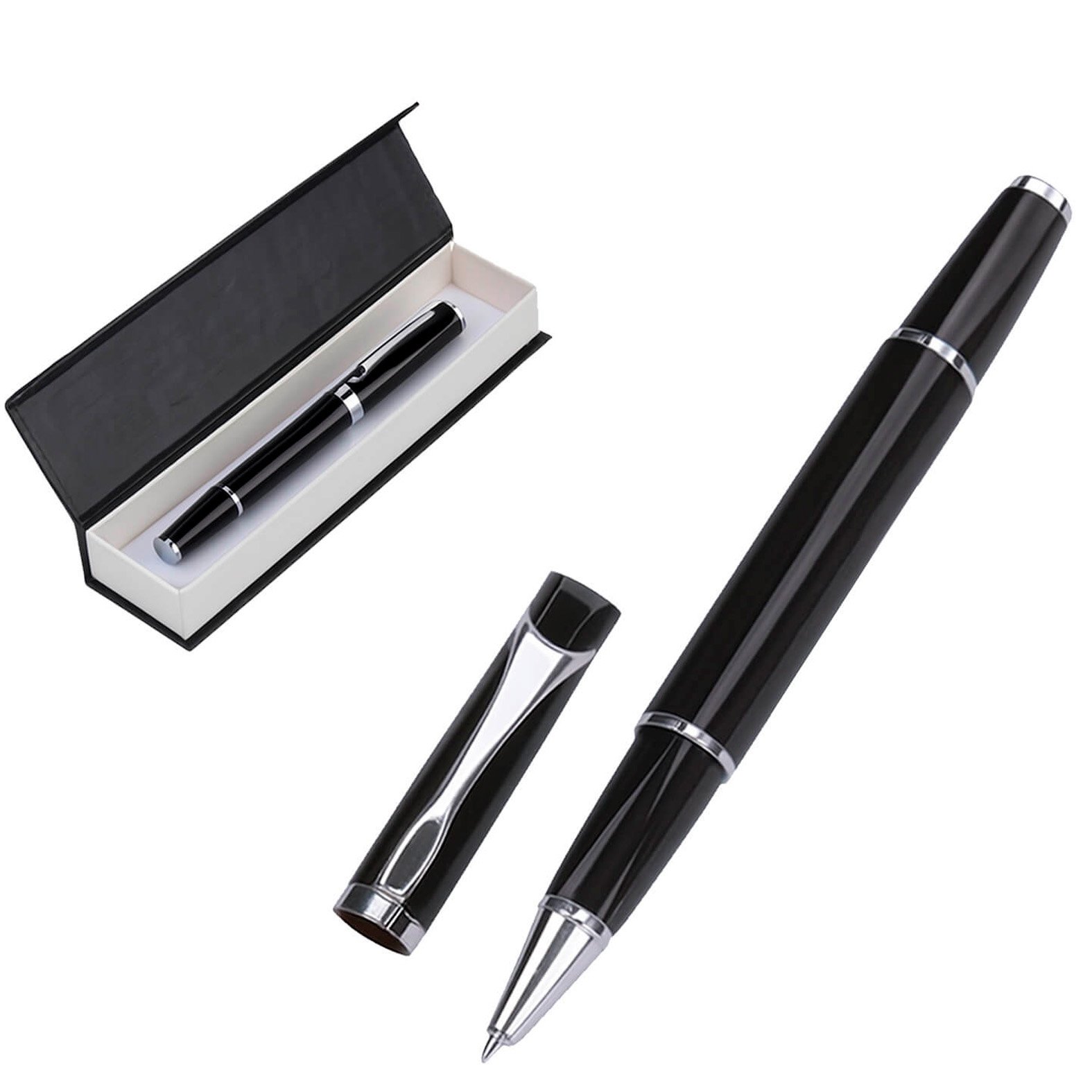 Bolígrafo metálico roller con estuche de cierre magnético., medidas: 1.1 x 14.0 cm, material: Metal, capacidad: , métodos de grabado: Grabado Láser,Serigrafía,Tampografía
